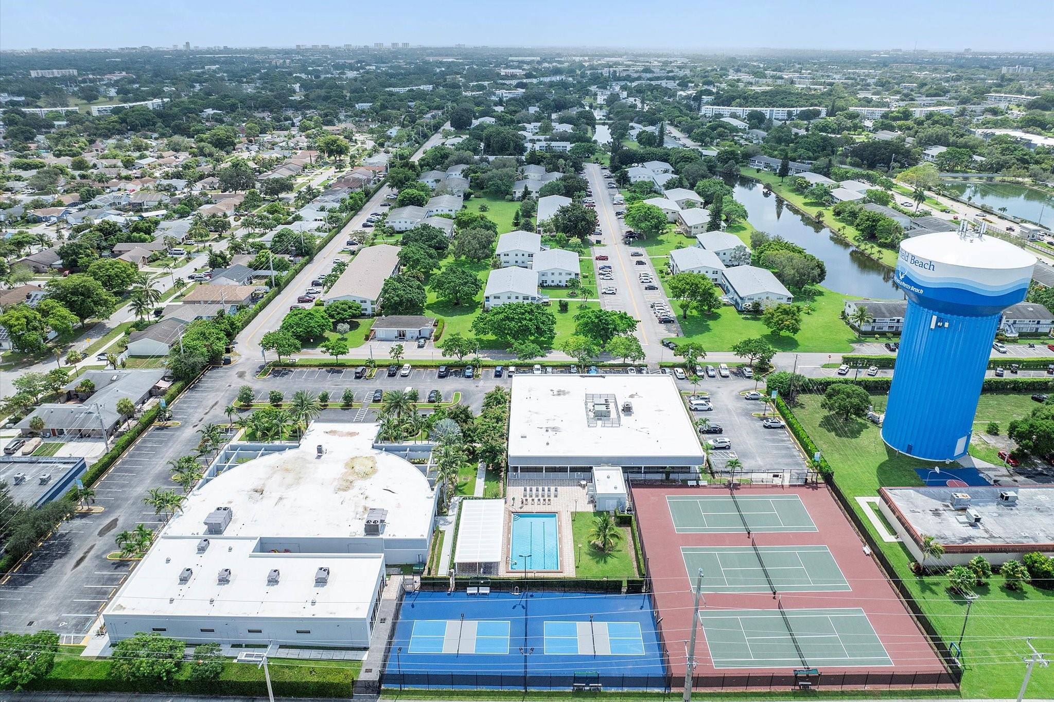 Enjoy main-level living in this 2-bedroom, 2-bathroom unit with screened and outdoor patio in the 24/7 gated 55+ community of Tilford J in Century Village, Deerfield Beach. Newly installed roof (2025). This active community offers resort-style amenities including bike paths, tennis, pickleball, shuffleboard, pool, sauna, large clubhouse with fitness center and event space, plus a courtesy bus to nearby shops. Monthly dues include cable TV, security, building maintenance, trash, and more. Live the vibrant lifestyle you’ve been looking for in an engaging setting! Property sold as-is.