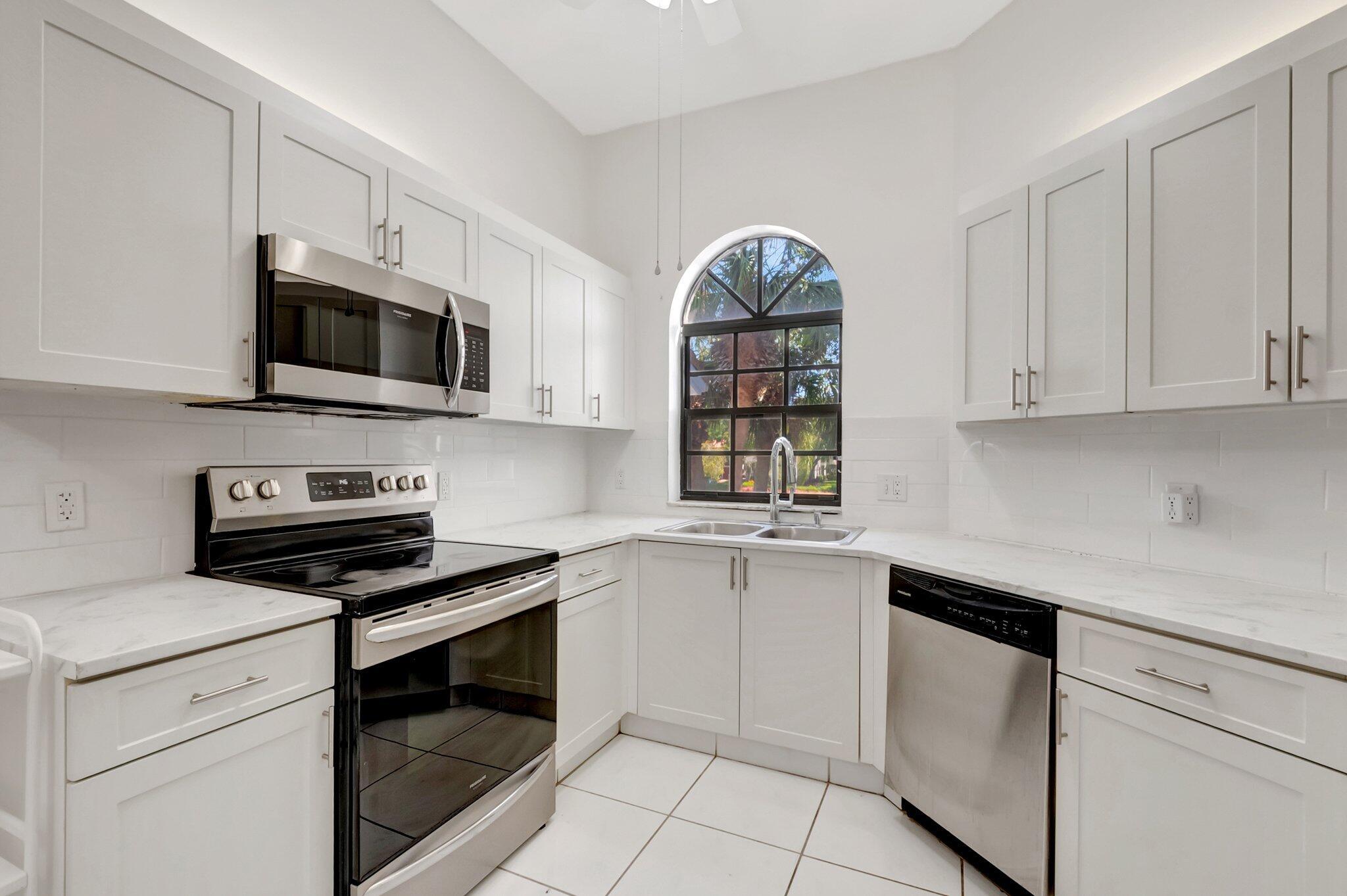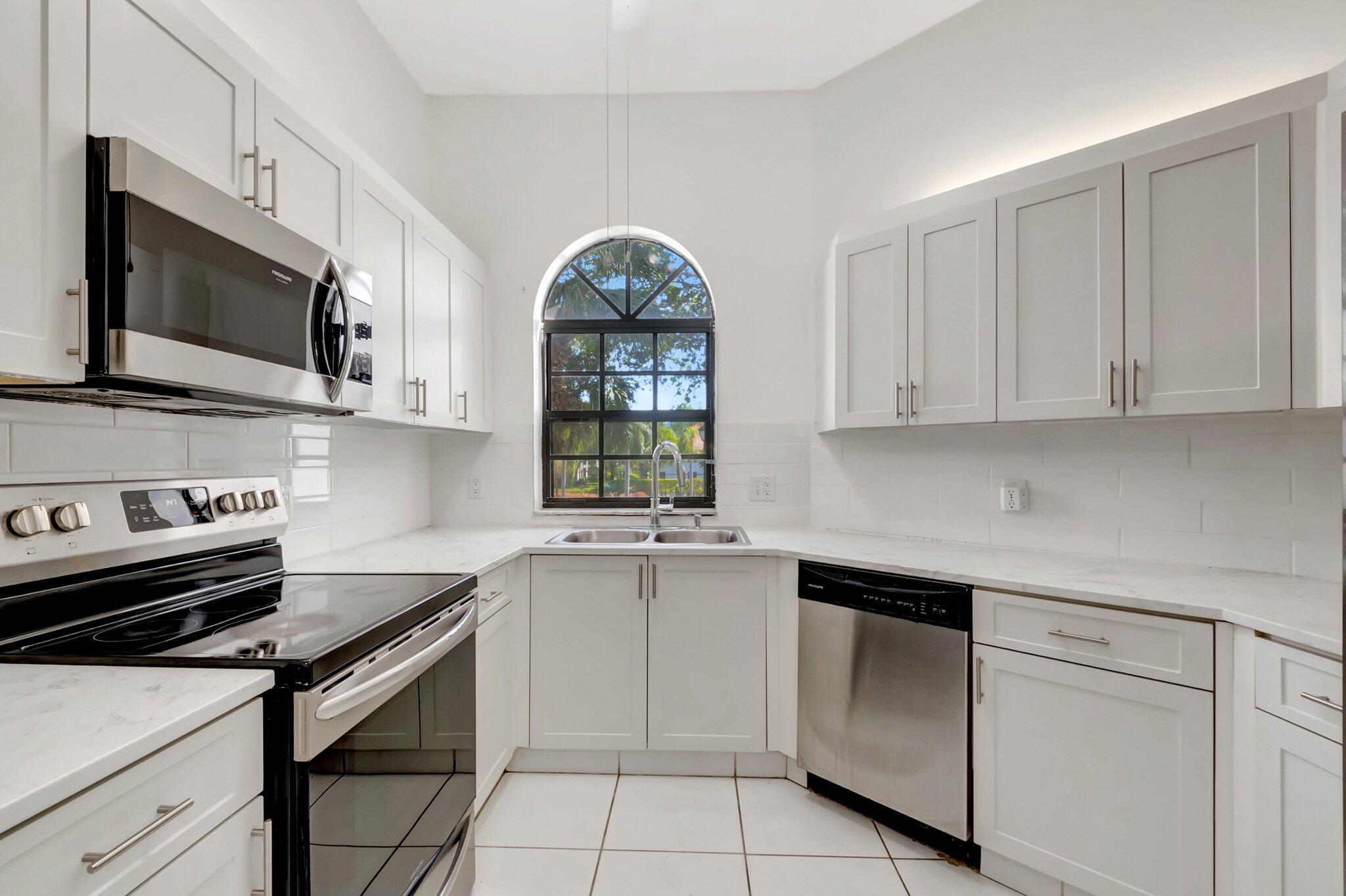 Property rented until 11/2026. Large, spacious first-floor-entry condo with the convenience of your own private elevator to 2nd floor! Featuring soaring vaulted ceilings, laminate stairs, and tile flooring throughout, this home offers both style and comfort. The kitchen has white cabinetry and stainless steel appliances. Expansive master suite with extra-large walk-in closet and en-suite bathroom. Located in the sought-after gated community of Platina, residents enjoy resort-style amenities including a sparkling pool, recently renovated clubhouse with gym, game rooms, lounge, cafe, library, tennis, basketball, and handball courts. Offered furnished or unfurnished, this condo truly has it all! Schedule your showing today and make this dream home yours!