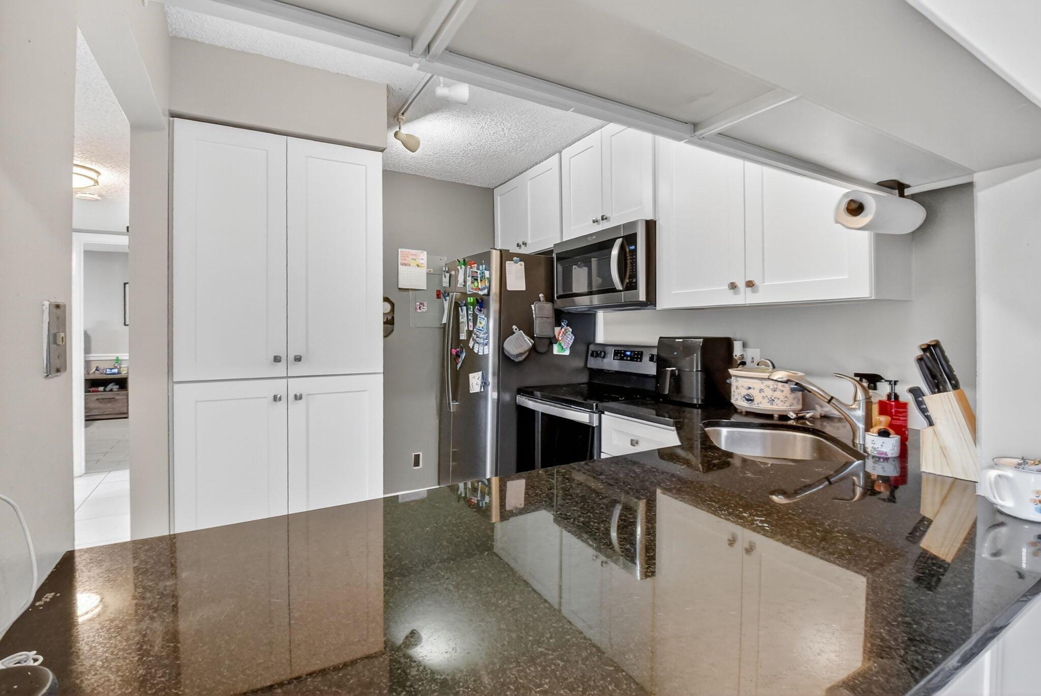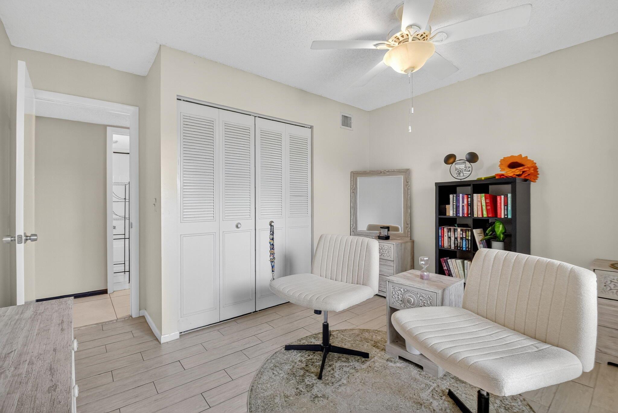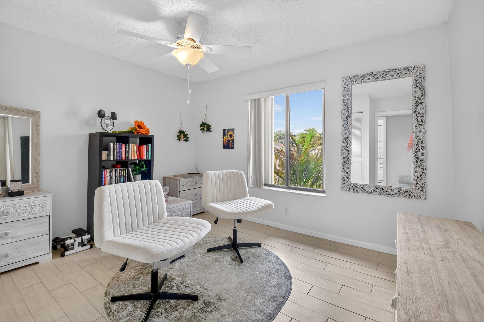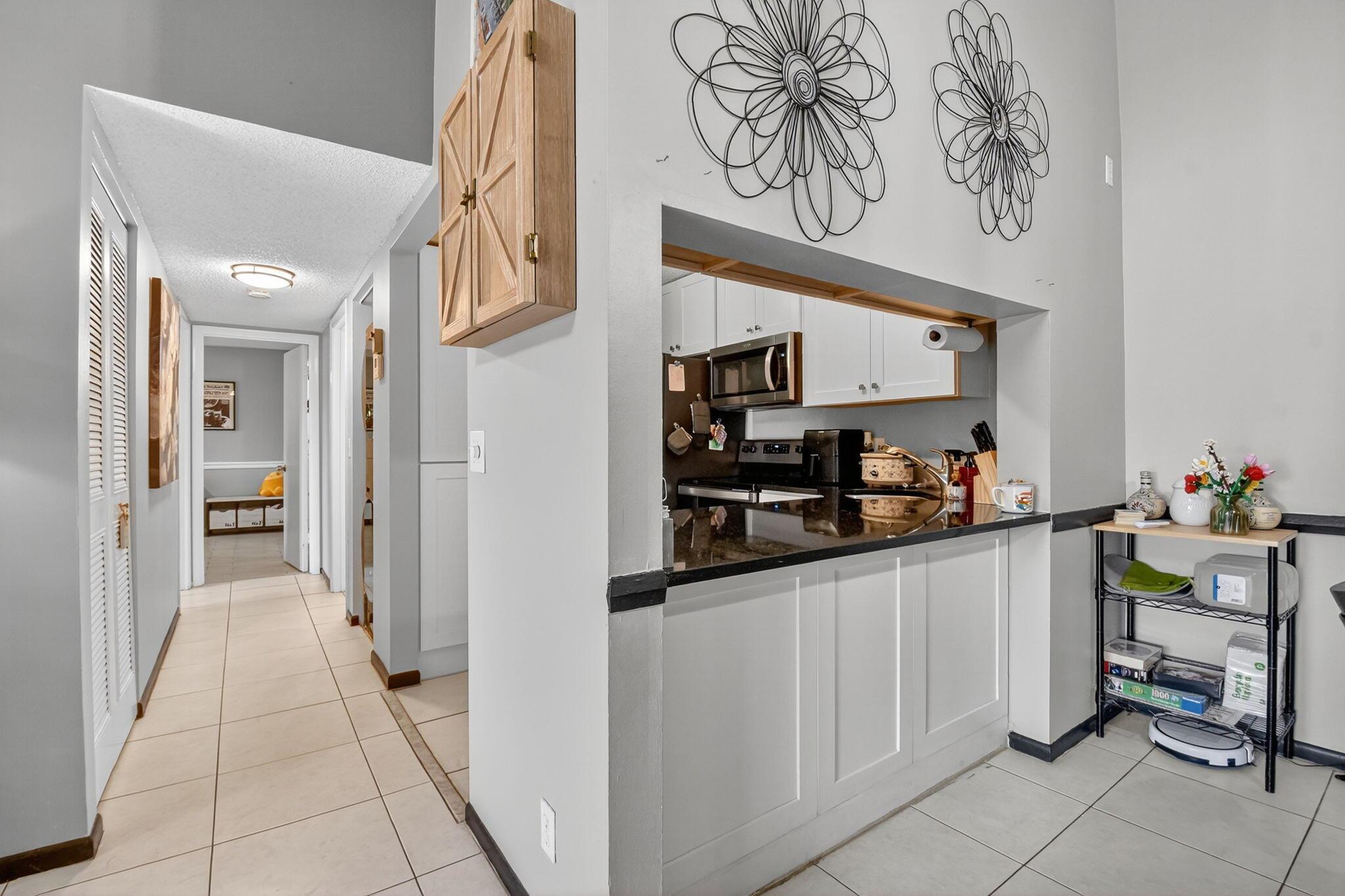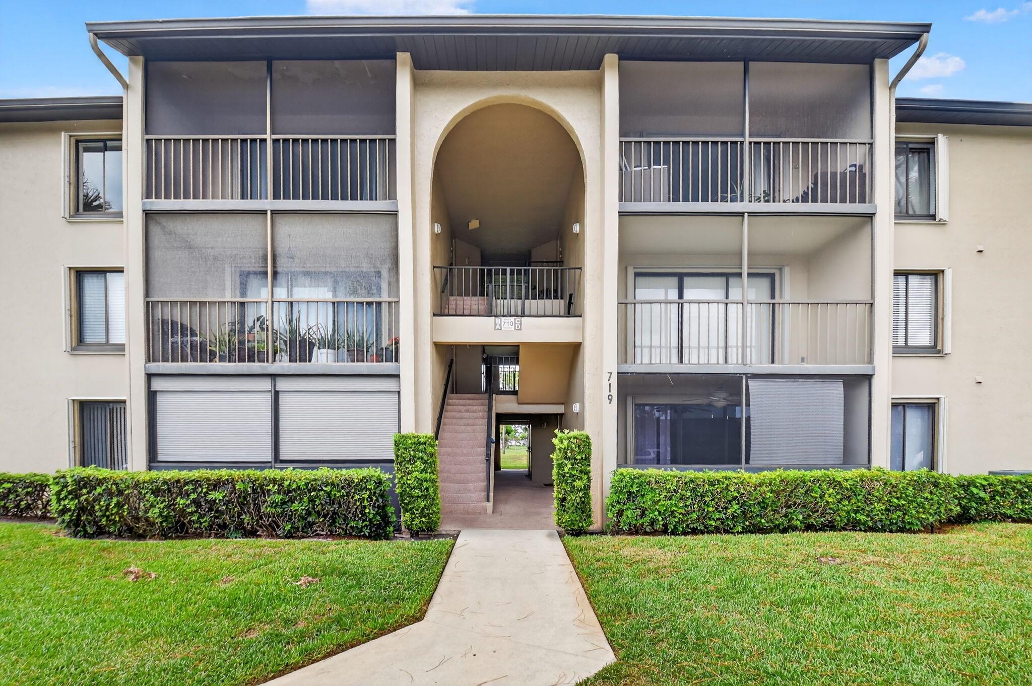 This beautifully updated 3rd-floor 2 bed 2 bath unit offers comfort, style, and convenience all in one. Located in Pine Ridge North Village lll of Greenacres! LOW HOA! This unit features a fully, just remodeled shower with brand-new plumbing throughout. The updated kitchen boasts new, sleek appliances. Other highlights include vaulted ceilings, built-in shelving in the primary closet, newer water heater (Nov. 2022), a new washer and dryer, and accordion hurricane shutters on all windows. Unwind on your private, screened-in balcony--graced with tranquil garden views and the added serenity of being a top-floor residence with no one above you.The community is very well-kept and offers fantastic amenities including a pool, tennis courts, and a clubhouse.