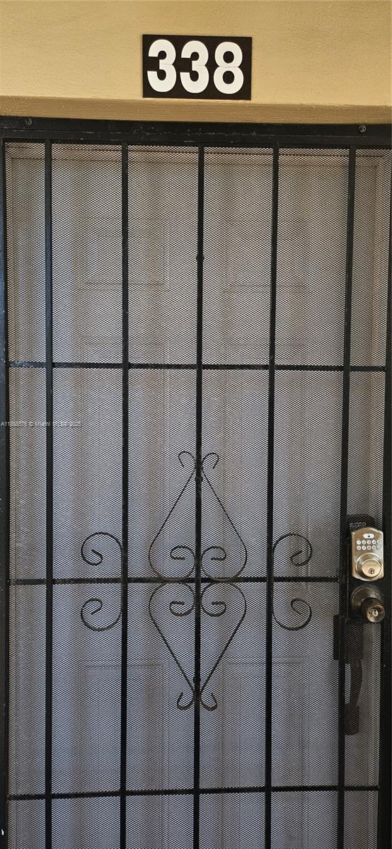 Spacious condo with peaceful patio overlooking tree filled courtyard. Eat in kitchen. Tiled throughout with large white tiles in kitchen and living areas. Contrasting large tiles in Primary Bedroom. Tastefully done. Updated 2nd bathroom. Artwork does not convey. A/C approx. 6 yrs old. Newer front door with additional security door which allows cross ventilation in the apartment. Furniture is for sale.This section has security fencing around the parking areas. Close to shopping, public transportation, medical, etc.