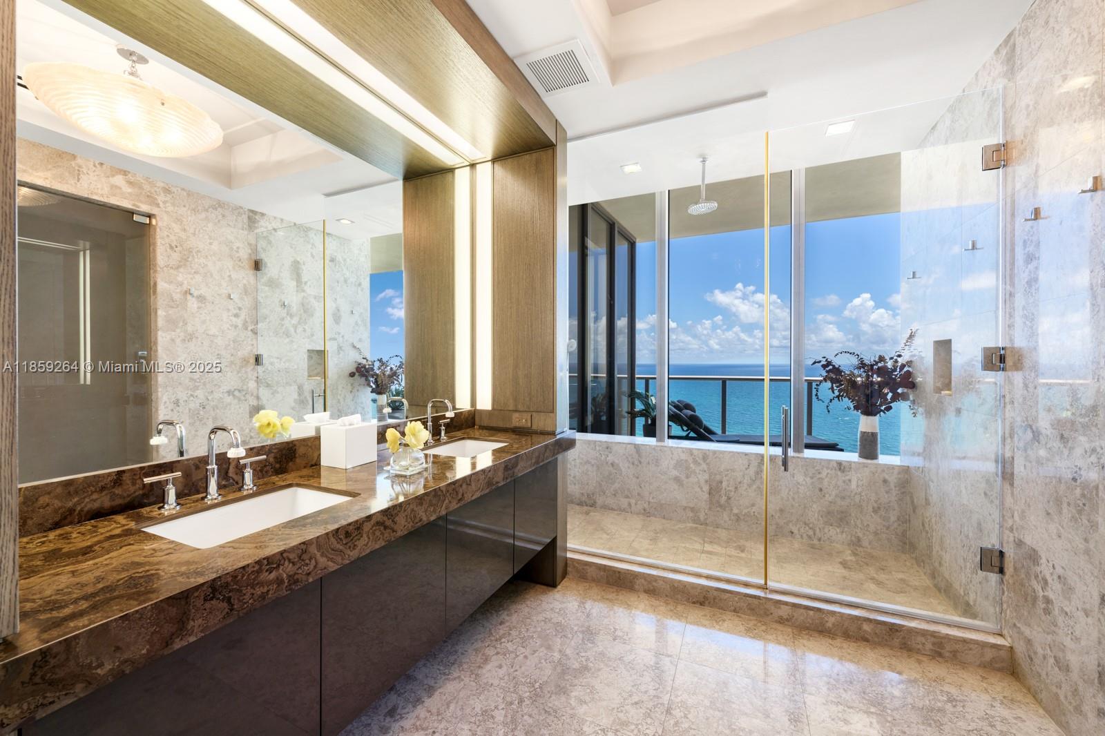 Discover luxury redefined in this stunning southeast corner penthouse at the prestigious St. Regis Bal Harbour. This ultra-rare residence boasts unobstructed views spanning South, East, & West - offering one of the most coveted vantage points in Miami. Floor-to-ceiling windows frame breathtaking ocean, bay, & city skyline views from every room. The sophisticated 3-bedroom, 3.5-bathroom residence features a chic media room & multiple balconies offering unique perspectives of paradise. With 3,884 square feet of refined living space plus 1,132 square feet of terraces, you'll have room to breathe & entertain while Premium finishes & thoughtful design elevate every corner. Building amenities include multiple restaurants, in-room dining, world-class spa, fitness center, pool & beach service.