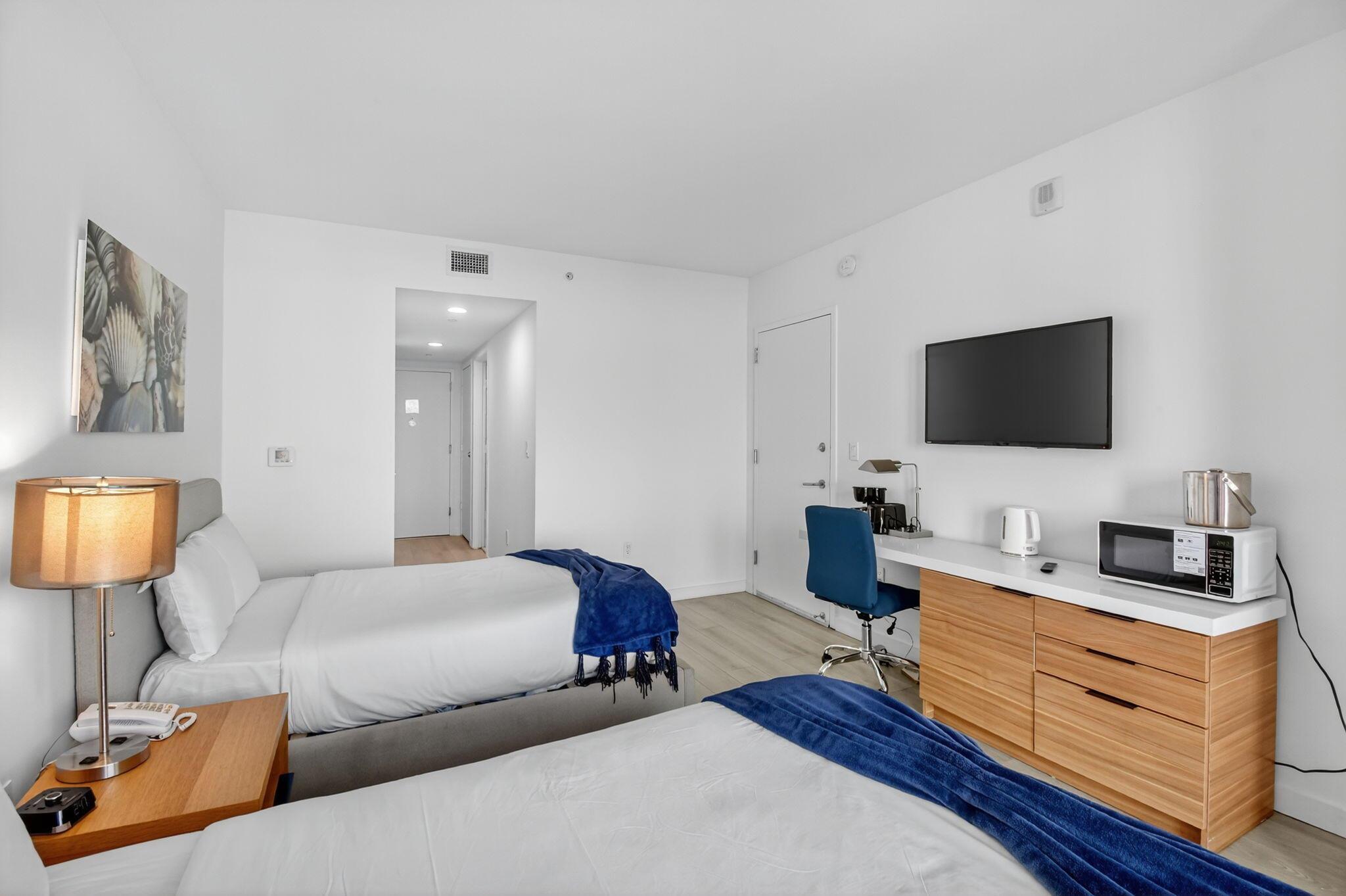 $5,000 CREDIT IF SOLD BY DEC 31st! Seller motivated! Showings are now more available!! Excellent Investment Opportunity! Daily rentals allowed -Perfect for self-managing w/ Airbnb/VRBO or utilize the condo-hotel system. Spacious 2 bed/2 bath unit can be rented as one, or split into a 1/1 suite + 1/1 studio, each with private balcony and separate entrance. Located on the 22nd floor, the unit offers breathtaking views of the intracoastal, ocean and Hollywood Beach skyline. Fully furnished, turnkey, and includes all utilities in HOA (electric, cable, internet, water, trash, sewer). Beachwalk offers resort style amenities, including a rooftop infinity pool, lower pool, full gym, restaurant, valet, bike rentals, complimentary shuttle to the beach, and beach services (chairs and umbrella).