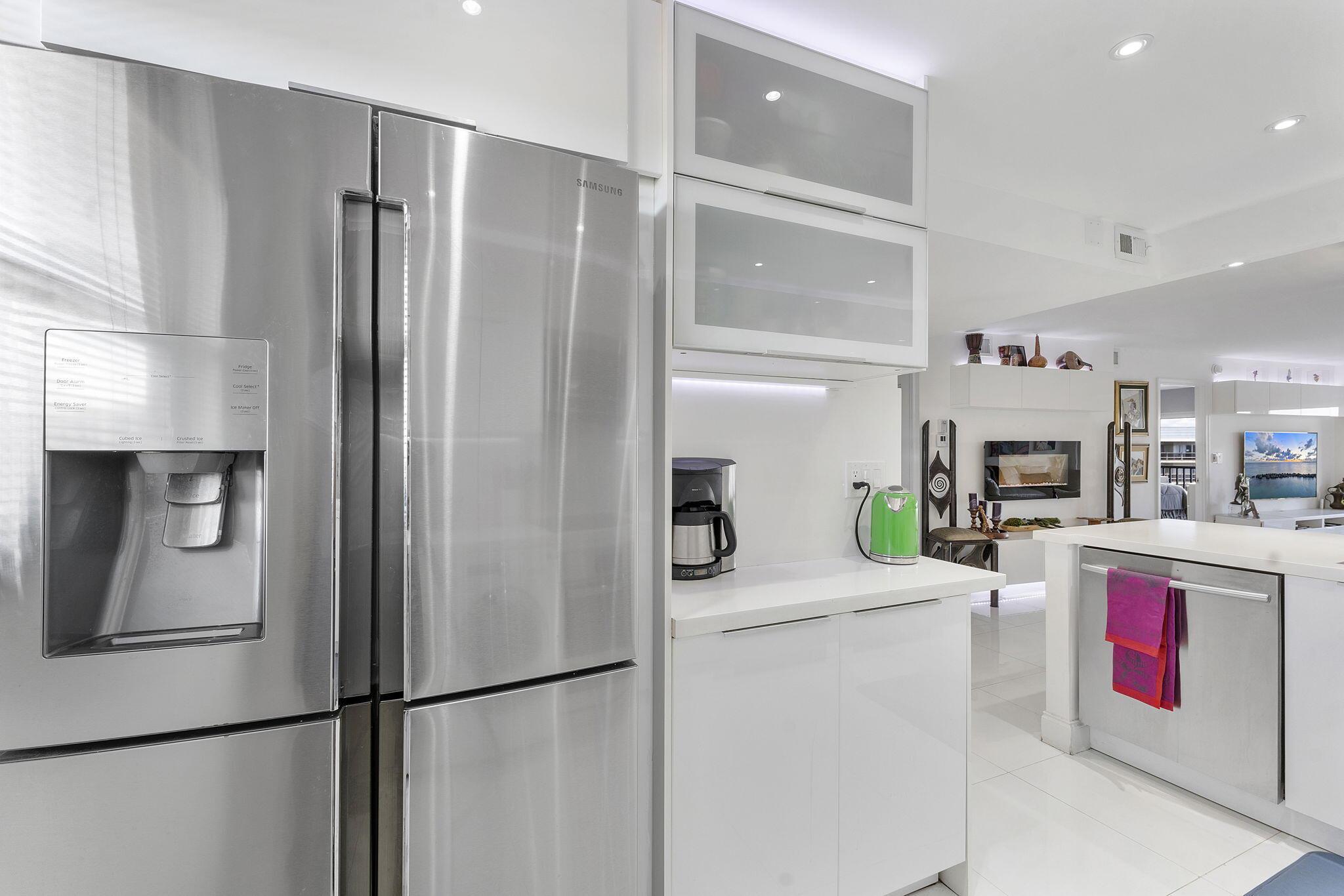 Your perfect waterfront condo awaits. Come see this beautifully renovated 2-bedroom, 2-bathroom condo. It features a bright, open floor plan with gleaming white tile flooring throughout and plenty of natural light. The kitchen has sleek white cabinetry and appliances, including a built-in oven and cooktop.