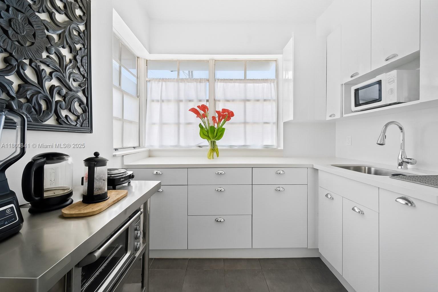 Tastefully remodeled, top floor unit. Elegant wide plank floors and modern kitchen. Corner unit with lots of natural light. Fully furnished - great investment opportunity. In the middle of South Beach on beautiful tree lined MeridianAvenue. A few blocks to the Beach, Shopping, Restaurants and Nightlife. Samsung Frame TV, convection toasteroven, modern custom made Murphy bed and Vintage Fridge make this an elegant Pied a Terre . Dont miss this opportunity to own a little piece of South Beach.