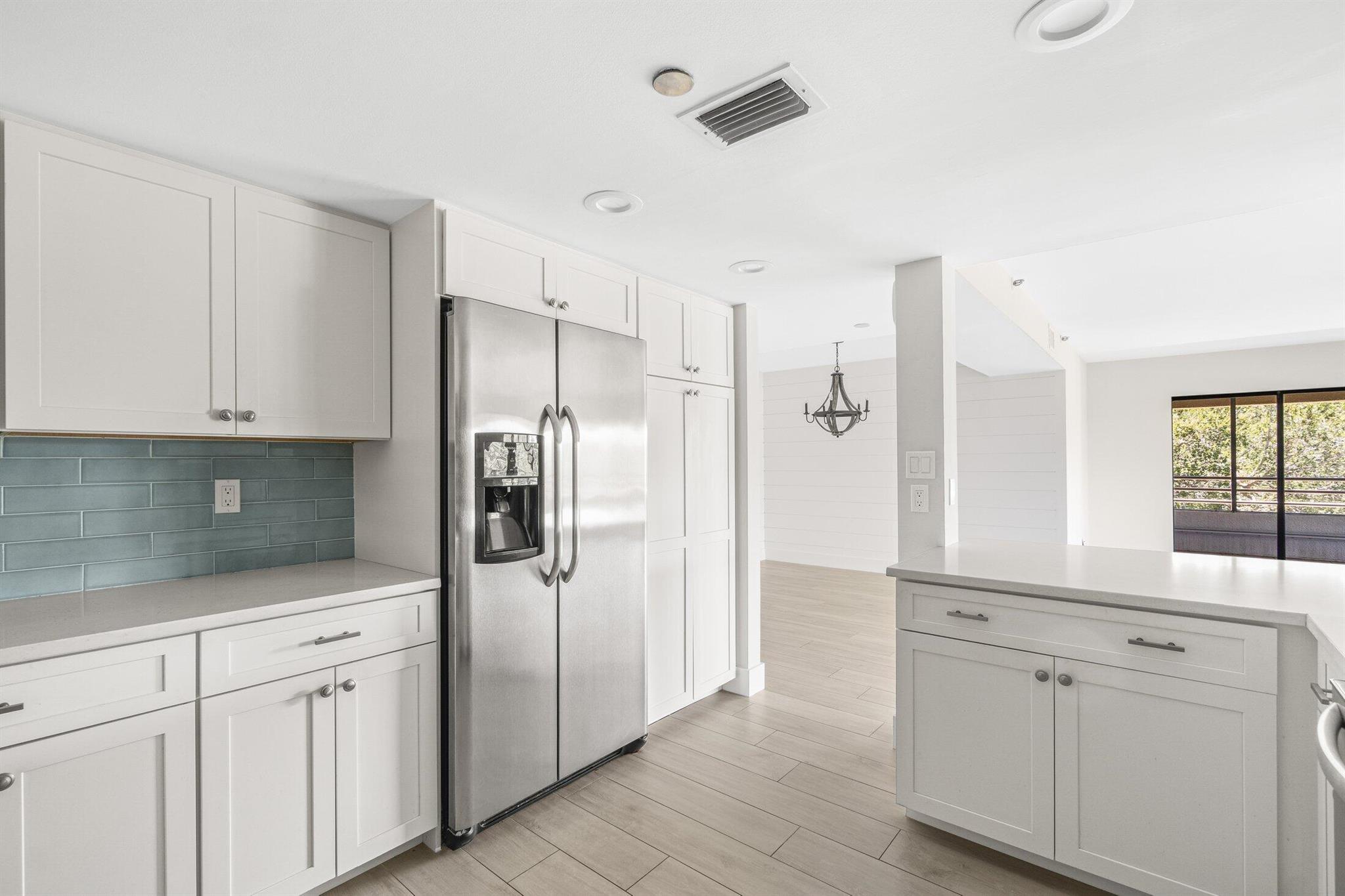 This beautifully renovated corner unit boasts a spacious kitchen, 3 bedrooms, and 3 baths within the charming intercoastal community of Oak Harbor. Positioned on the top floor, it features an expansive wrap-around balcony, rare attic storage, and stunning views of the oak trees. Floor-to-ceiling sliders fill the space with natural light, highlighting breathtaking golden sunsets in the evenings. Newly installed flooring, shiplap walls, a modernized kitchen with new appliances, updated bathrooms, and contemporary fixtures mean it's move-in ready. Centrally located in the tranquil gated community of Oak Harbor in North Palm Beach.The Marina community offers a large waterfront clubhouse complete with a fitness center, swimming pools, and tennis court