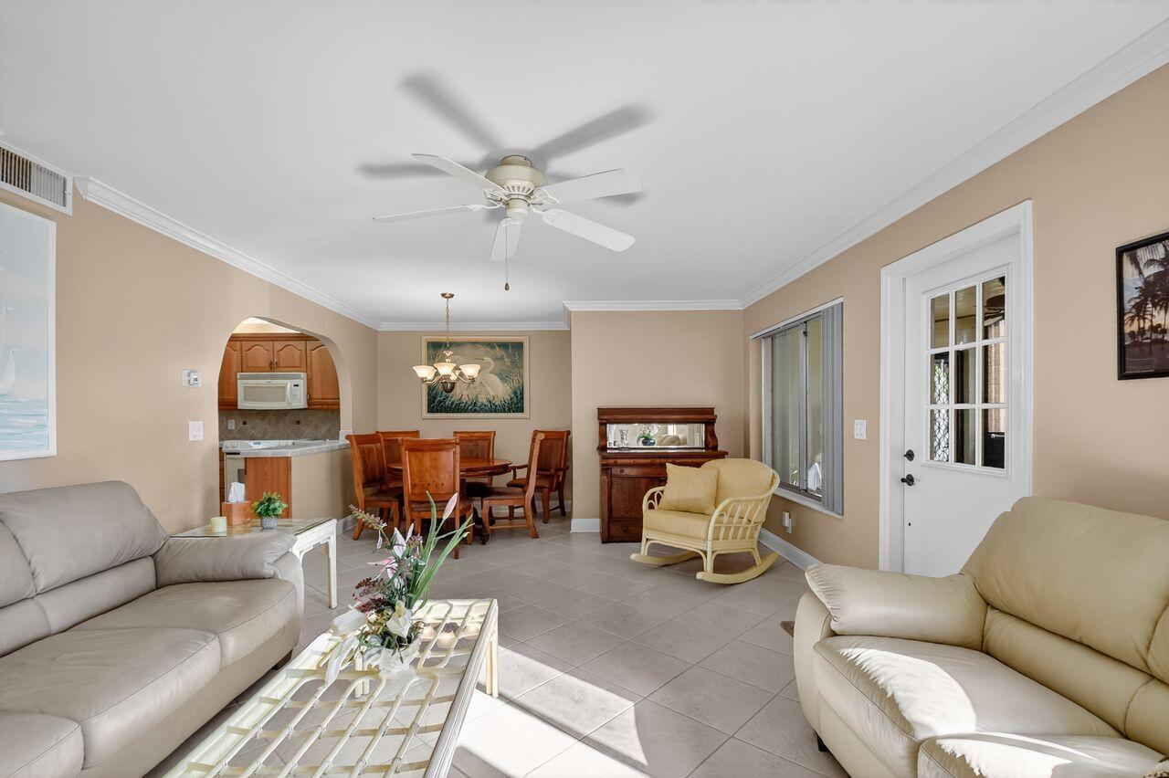Enjoy effortless living in this first floor 2BR/1.5BA condo with scenic canal views. Features include crown molding, tile flooring, walk 'in closets, and a neutral color palette. The kitchen boasts arched entryways and a newer refrigerator, while the laundry room includes a newer washer/dryer. Stay comfortable year around with a 2020 energy efficient AC and accordion shutters for added storm protection. Community amenities include a lakeside pool, a vibrant social calendar, and a clubhouse equipped with impact windows and a generator for peace of mind in any weather. Partially furnished with a relaxed coastal vibe, this move in ready home offers assigned parking just a short distance from your door and plenty of guest parking.