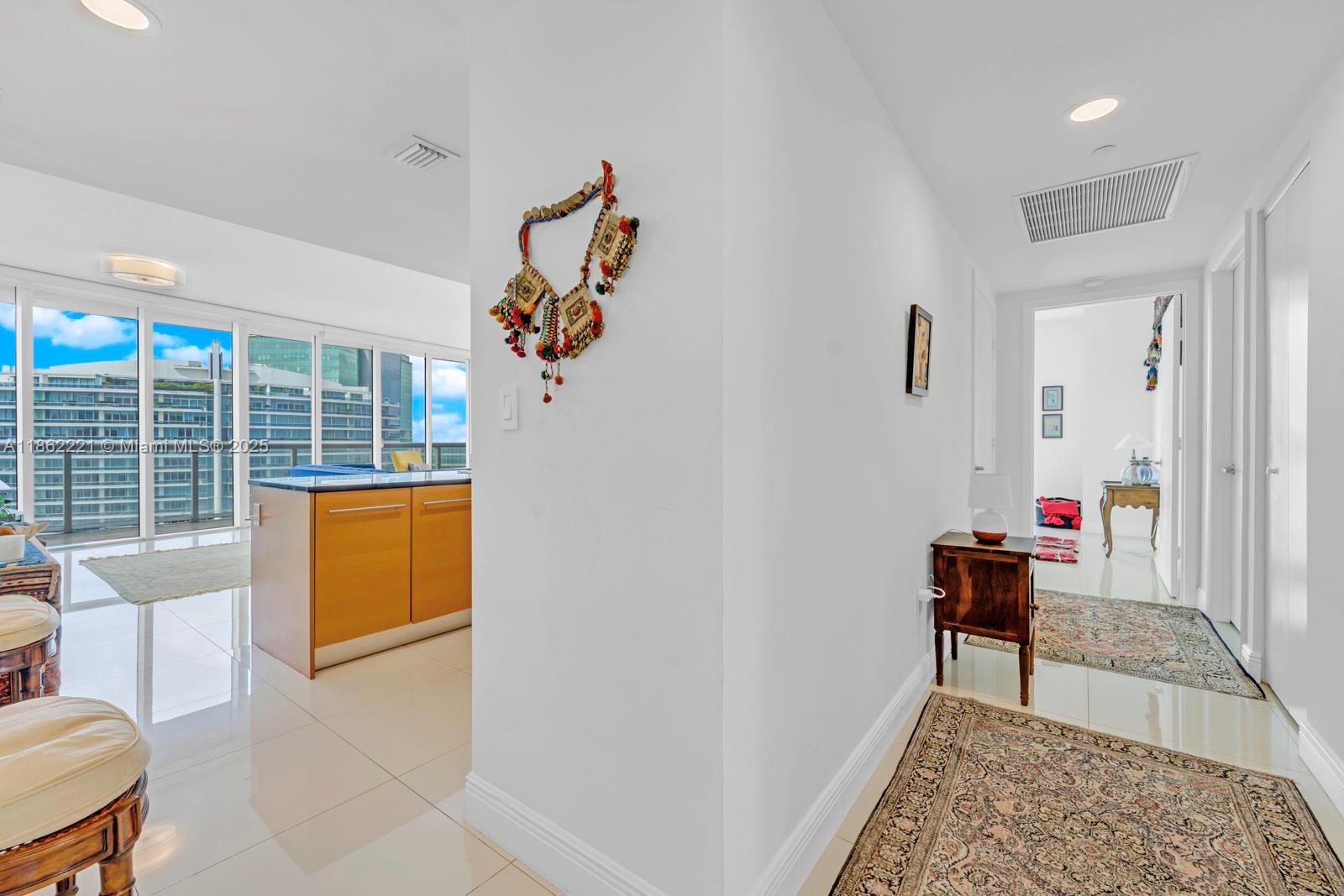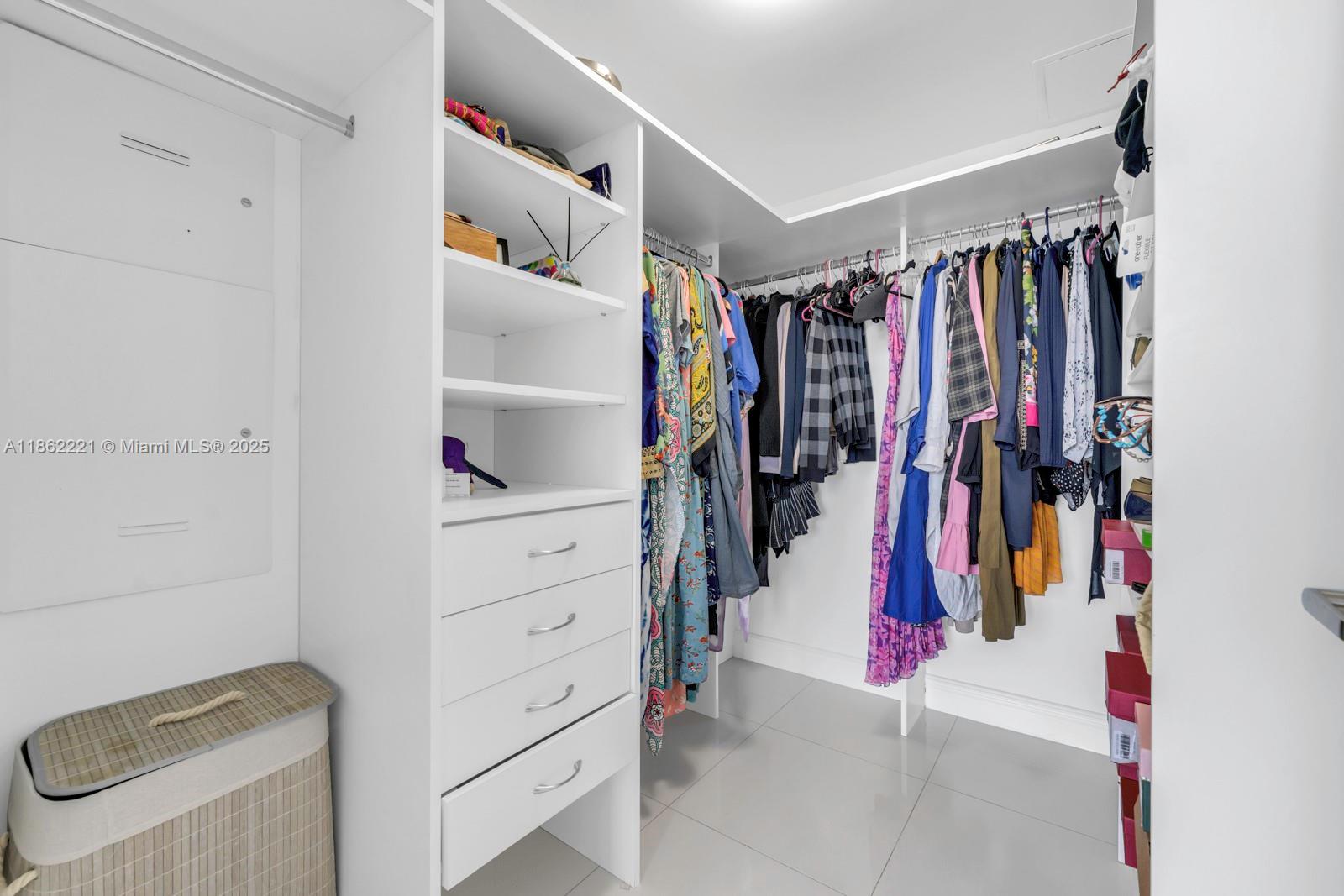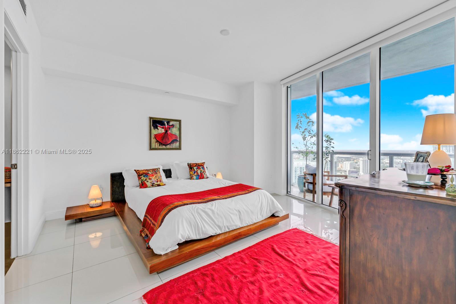 This exceptional 2-bedroom, 2-bathroom corner unit on the 50th floor, offers breathtaking water and city views through floor-to-ceiling impact windows. The residence features elegant Italian white porcelain tile throughout, an open kitchen with premium stainless steel appliances (WOLF/Subzero), custom-built closets, and electric curtains/shades. The master suite includes two walk-in closets for ample storage. ICON Brickell offers residents world-class amenities, including two 5-star restaurants, a state-of-the-art spa, an infinity pool, valet service, 24/7 security, a gym, and a theater.