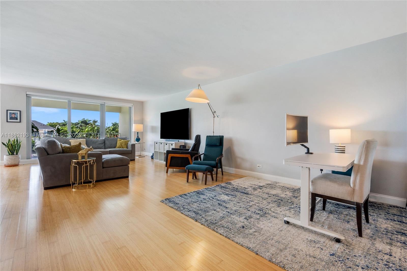 Opportunity knocks... Bay Harbor waterfront offered at $415/sf, boat dockage available. This beautiful 2/2.5 SW corner with 2045 SF is flooded with tons of natural light. Open eat-in kitchen, formal dining, living room & carved out office space all overlooking the waterway. Expansive Primary Bedroom features 2 walk-in closets & bathroom with 2 sinks & tons of storage. The Oversized 2nd bedroom (could be made into 2) has an ensuite bath. New hurricane windows/doors, new Lennox AC, New water heater, New smart thermostats & 3 Vivint Security cameras. 2 parking spots. Bldg completed 50 year certification. Bay Harbor Islands is the cutest town with everything in proximity, Bal Harbour Shops, Surfside, the beach, schools, houses of worship. Min to Haulover cut to the ocean.