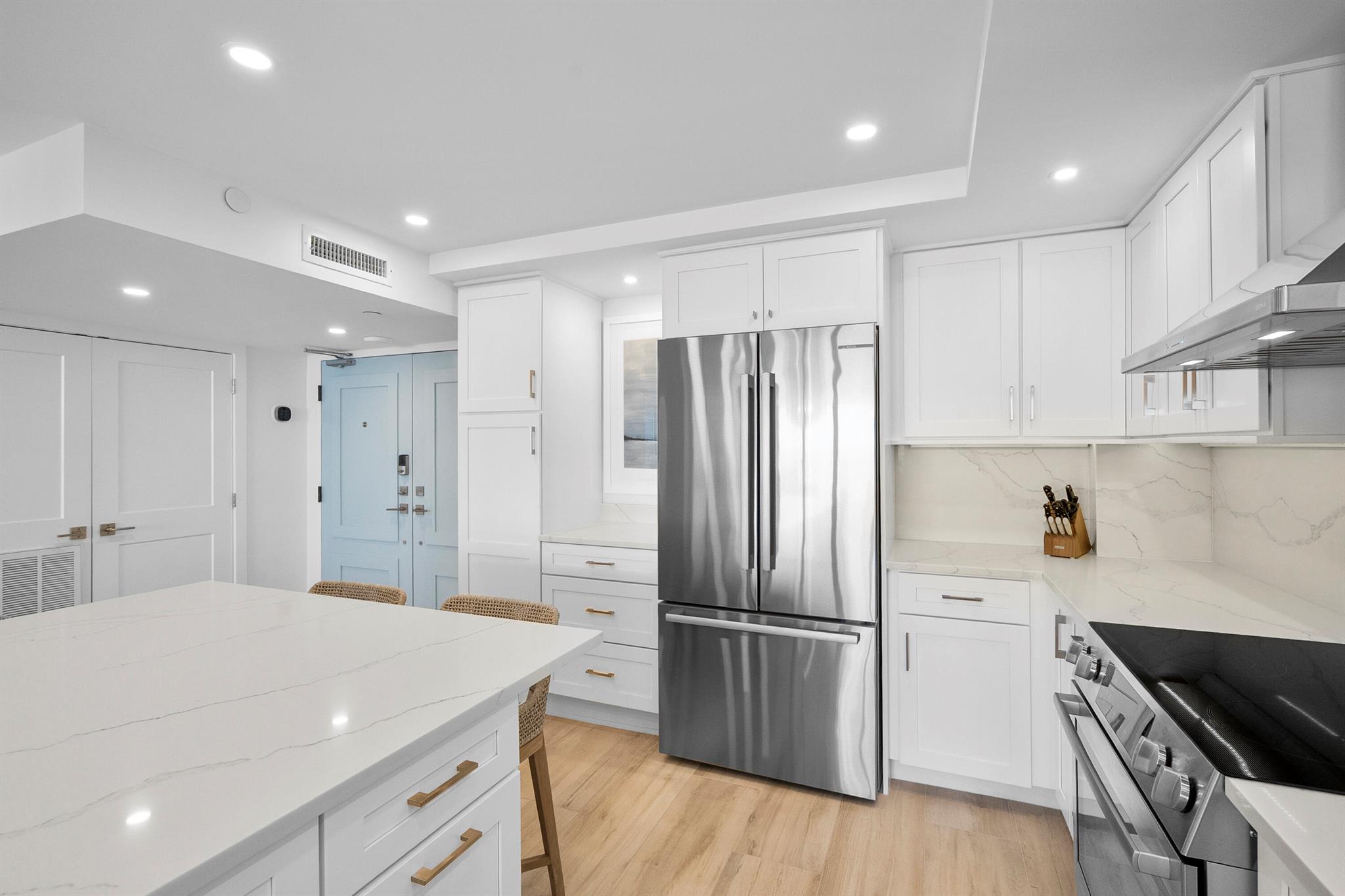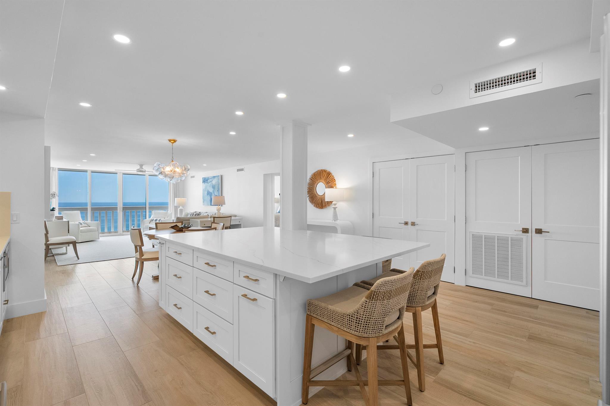 This beautifully updated 2-bedroom, 2-bathroom condo at Miramar 2 on Hutchinson Island offers over $200,000 in custom upgrades and unmatched oceanfront living. The wide-open kitchen is a showstopper, featuring a massiveisland, quartz countertops, and high-end appliances, seamlessly flowing into the living and dining areas with tile floors throughout. Both bathrooms have been beautifully updated with spa-like finishes, creating a luxurious, relaxing retreat. What makes this condo truly one-of-a-kind is that both bedrooms and the living space showcase stunning ocean views, with over 40 feet of water frontage--an exceptional feature rarely found on Hutchinson Island. Comfort and convenience are ensured with a newer AC and tankless hot water heater.