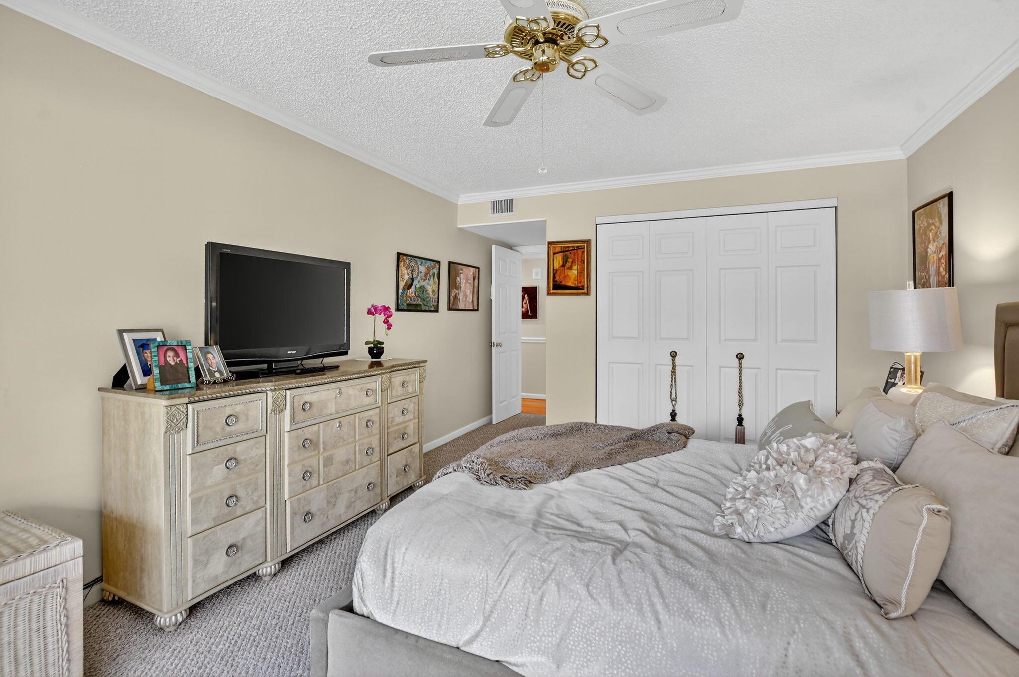 Corner Unit in 24/7 Manned Gated Community. Features; 3 Bedrooms, 2.5 Bath. HUGE Primary Ensuite; Dressing Area, Make-up Area plus 3 oversized custom closets! Enjoy the 2nd bedroom which is just as large as the Primary! Expansive Patio has stunning views from every room! Updated Kitchen; white cabinets & granite countertops with soft close drawers. HURRICANE SHUTTERS on windows. Washer/Dryer is located inside the UNIT! 'A' Rated Schools, Verde, Boca Middle & HS. Condo fees incl; INTERNET, Cable (3 boxes), Bldg Insurance, Landscaping & Water. NO Leasing 3 years. Close to Restaurants, Town Center Mall, the beach, FL Turnpike & 95. No Leasing 3 years.Looking forward to meeting you & showing this beautiful home to you! ***MONTHLY CONDO FEE REMAINS THE SAME IN 2026***