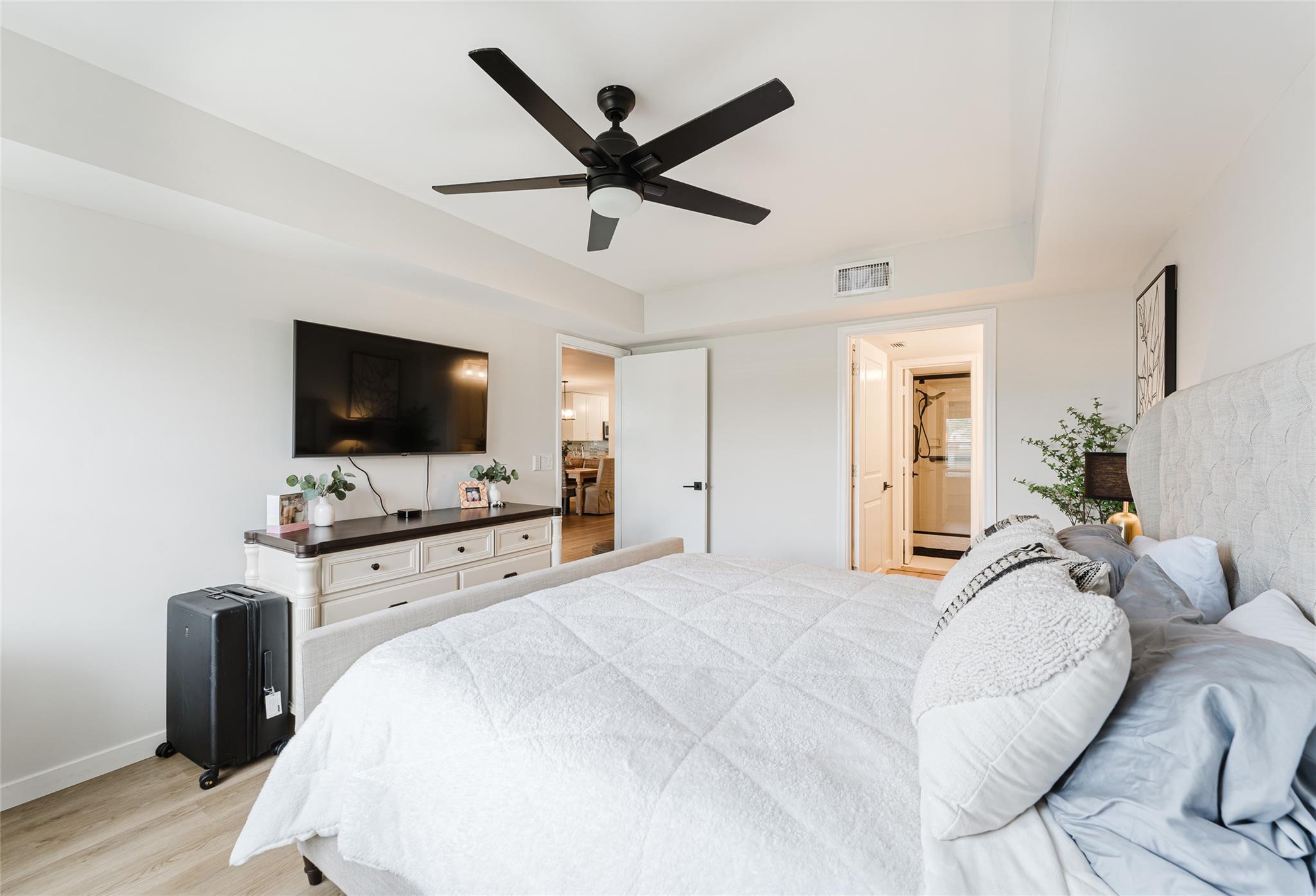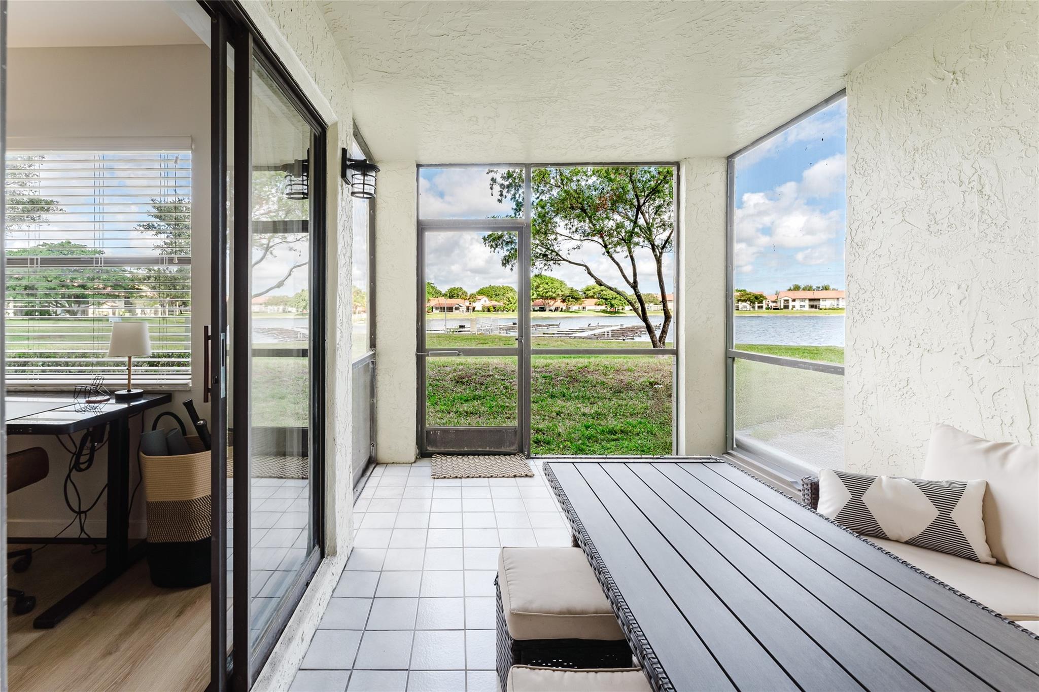 Like no other, this 2 bedroom Plus a den/flex, home truly stands apart thanks to its thoughtful upgrades and premium features. Inside, you’ll find a modern smart home setup with Nest thermostats, a reverse osmosis water filtration system connected directly to the refrigerator for crystal clear drinking water and ice, and high end luxury vinyl flooring throughout. The bathrooms have been beautifully upgraded with elegant finishes, and custom double doors open into a versatile bonus room or office. Step outside, and the lifestyle becomes even more exceptional: enjoy direct access from your back patio to the serene lake, main pool, and clubhouse just steps away. This unique combination of luxury upgrades and unmatched location makes this condo one of the most desirable in the community.