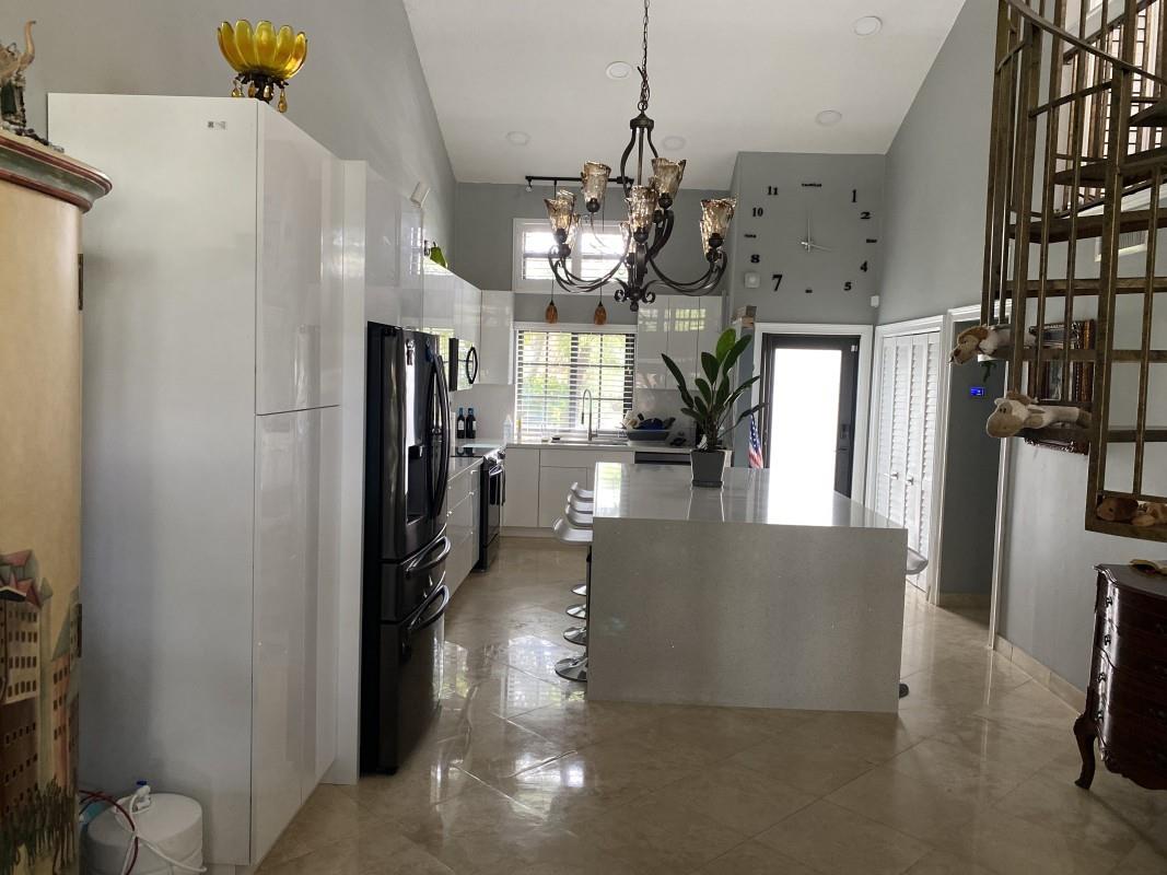 This is a unique & rare opportunity to own this immaculately completely renovated. 2-bedroom, 2-bath unit including a loft (Size 10'2" x 14'2") that could be used as an office, den or even a third bedroom. All impact windows and doors, vaulted ceilings, travertine flooring throughout, a 50K Renovated Gourmet kitchen (Size 13'3" x 21'2" that includes an island of 5' x 8'4" (8 people seating). Updated baths, custom closets & yard completely done w/Travertine, it's peaceful, private, perfect for relaxation