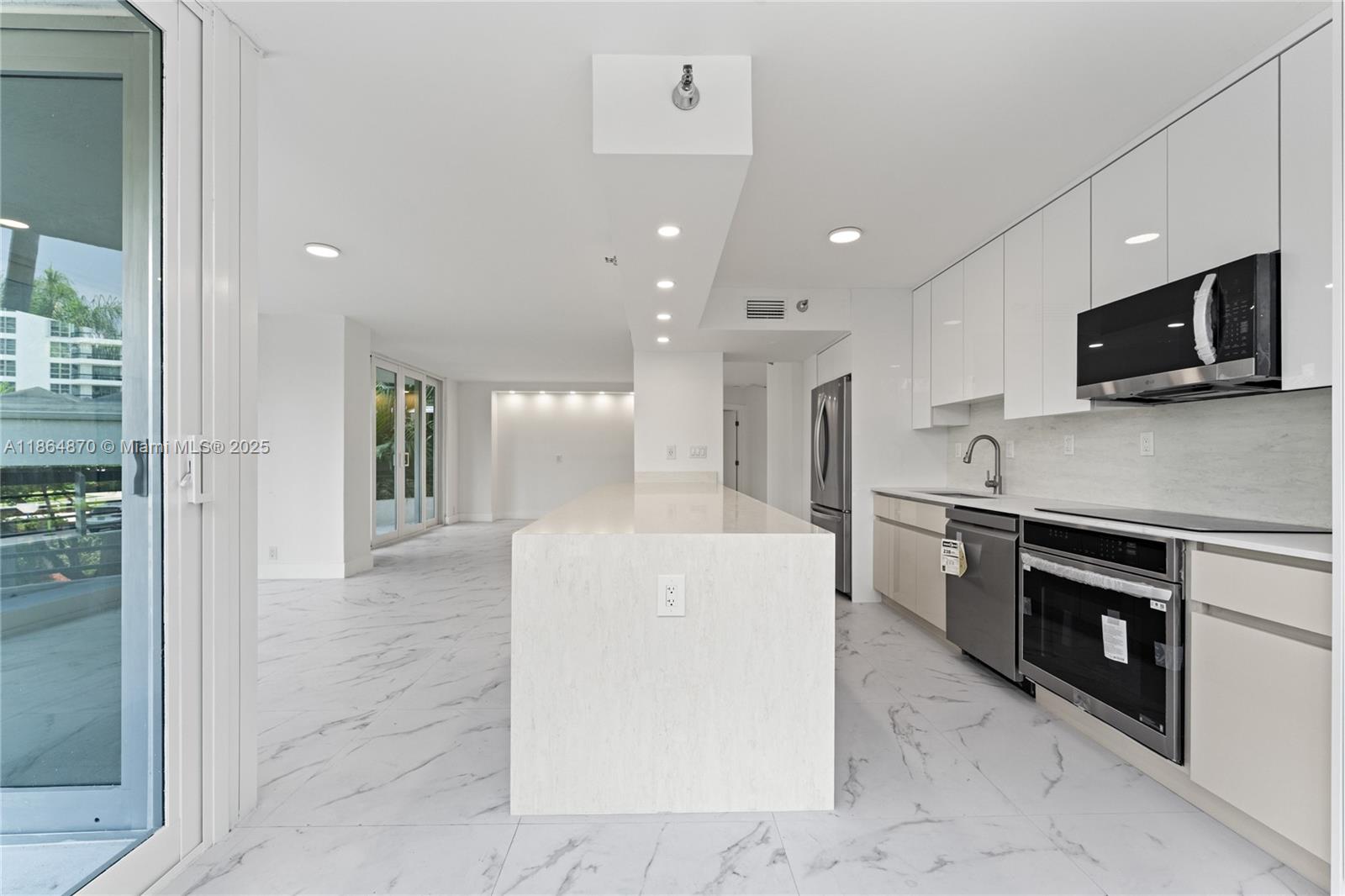 Luxurious and modern corner condo at Mystic Pointe with a spacious open floor plan, unique floor-to-ceiling IMPACT windows, and abundant natural light. This residence showcases top-of-the-line upgrades with porcelain tile throughout, a brand new open-concept kitchen designed with premium finishes, and new state-of-the-art appliances. The primary suite features an updated en-suite bath with dual vanities, antifog mirror, linear drain, and freestanding soaking tub. New washer and dryer. Designer style custom closets provide ample storage. Additional improvements include upgraded electric and plumbing. Community amenities include gym, tennis, pickleball, restaurant, marina, dog park, EV stations, and more. Close to houses of worship, beaches, Don Soffer Trail, Aventura Mall, and airports.