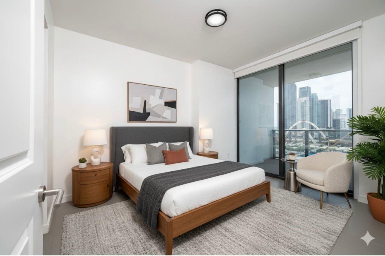 Spectacular 2 bed / 2 bath residence at CANVAS with stunning bay and city views. Features include an open kitchen, split floor plan, modern tile throughout, impact windows and doors, and a spacious balcony perfect for enjoying skyline sunsets and city lights. CANVAS offers 30,000+ sq. ft. of resort-style amenities including sunrise and sunset pools, spa, sauna, 3,000 sq. ft. state-of-the-art gym, yoga garden, racquetball court, theater, social and game rooms, children’s playroom, eco-friendly gardens, indoor/outdoor café and bar, plus 24/7 security, concierge, on-site management, and self-parking. *** Unit has storage on same floor # 15D *** Condo fee includes: Water, basic cable, and trash.