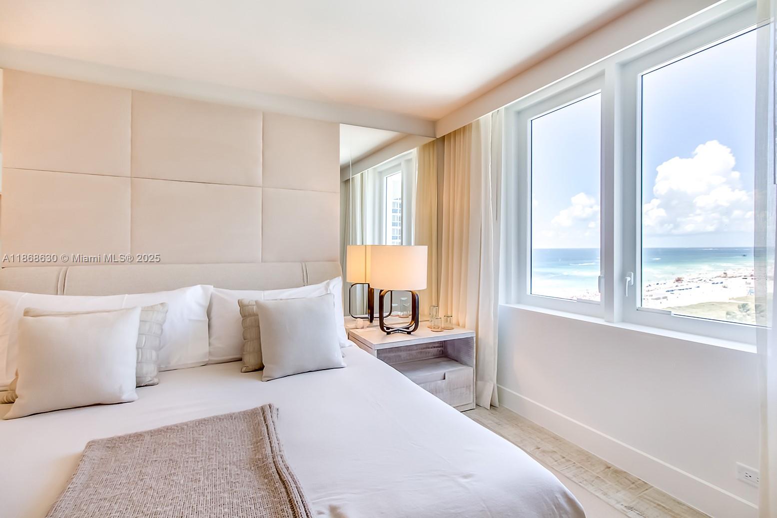 Rarely available 16-line—the closest 1-bedroom to the beach with an unobstructed ocean view, on the coveted south, pool-facing, side of 1 Hotel & Homes. This turnkey residence offers breathtaking panoramic views of the beach and iconic pool deck from your private balcony. Interior features include reclaimed wood accents, a full kitchen with Sub-Zero and Bosch appliances, washer/dryer, soaking tub, king bed with organic linens, and sleeper sofa. Owners enjoy 4 pools, rooftop bar, beach club, spa, gym, valet, and on-site dining. Daily rentals allowed through the hotel or third-party platforms, offering exceptional flexibility and income potential. An ideal blend of lifestyle and investment at Miami Beach’s premier oceanfront address.