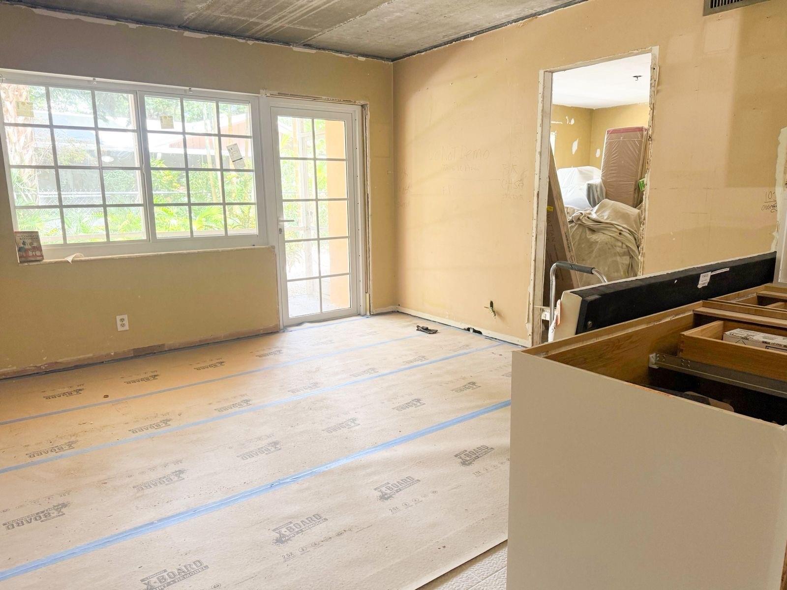 Condo with Unlimited Potential in Manor Grove Village 4 Discover the opportunity to create your ideal home in this spacious 1-bedroom, 1/2-bath condo with a versatile bonus room—perfect for a home office, den, or guest bedroom. Currently under construction, the property is ready for your finishing touches and comes with approved plans and an active permit already in place. Major updates have already been completed, including a new HVAC system, new windows, upgraded plumbing, elegant tile flooring, and brand-new kitchen cabinets, electric fire place is excluded. Located in the desirable Manor Grove Village community, residents enjoy access to a heated pool, tennis courts, clubhouse, and barbecue area. Just steps away, you’ll find an array of restaurants, shopping, and vibrant nightlife.