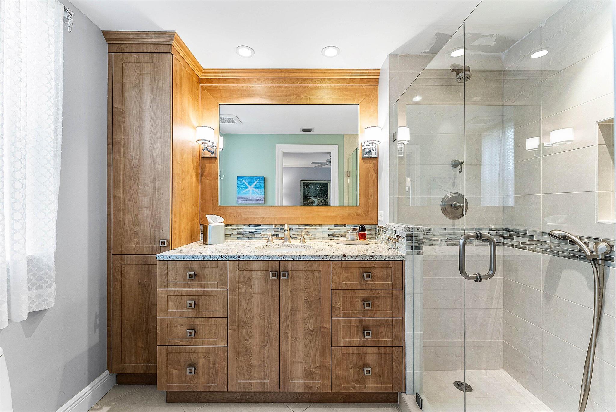 Nestled within the coveted Bermuda High South community, this oceanfront retreat blends sophistication with timeless coastal charm. Expansive gardens, sweeping ocean vistas, and a rare lot size set it apart. The professionally remodeled and decorated 2BR/2BA home features 9-ft ceilings, crown molding, a chef's kitchen with built-in bar/buffet, and stylish tile floors. An oversized covered patio opens to a private lawn, while impact glass and new sliding phantom screen doors offer both protection and comfort. Elegant window treatments, refined finishes, new AC (2022), custom closets, and a large garage storage room ensure convenience and move-in readiness. Life here is defined by coastal serenity-stroll through sea grapes and