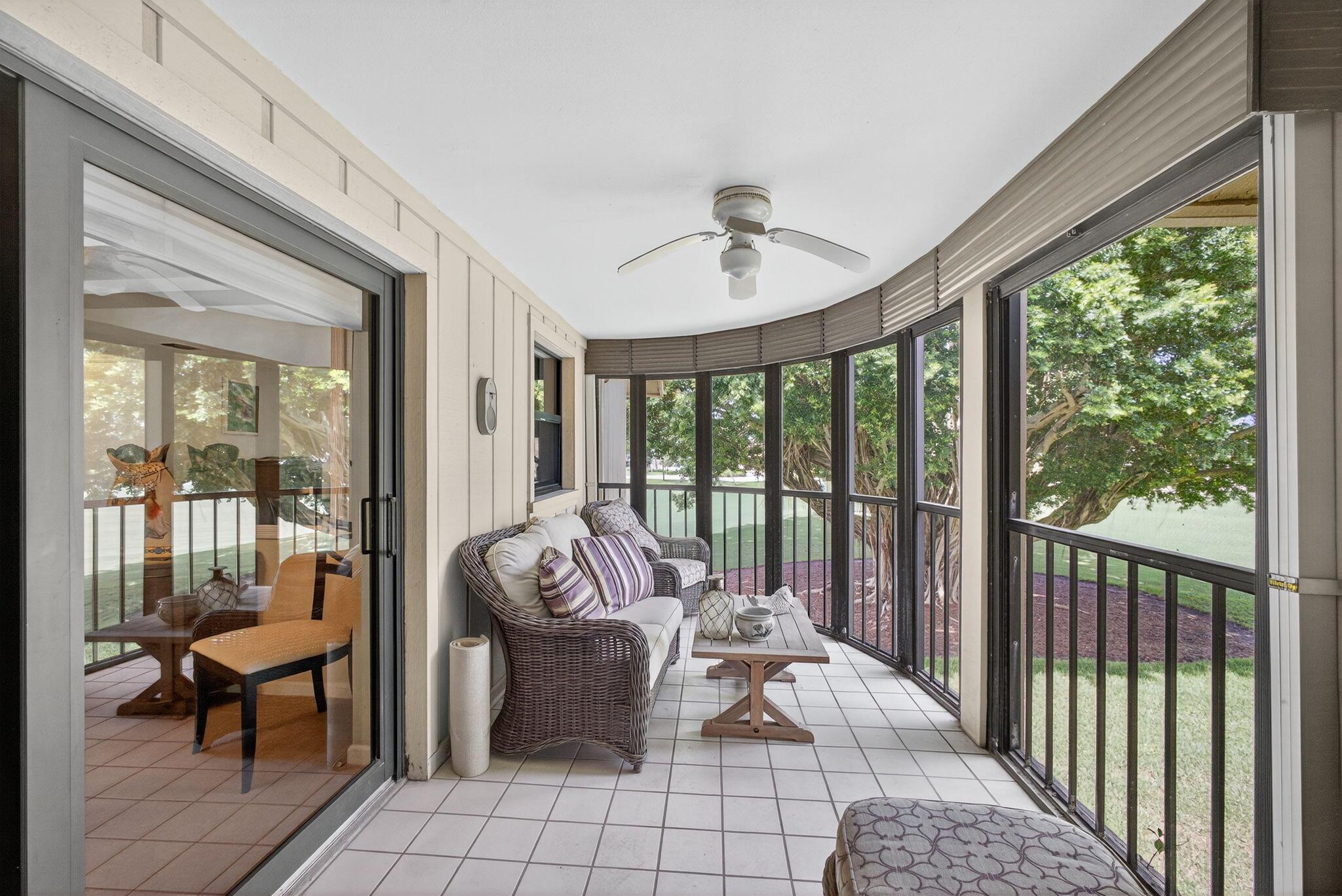 Welcome to this beautifully updated 2-bedroom condo with a versatile den, perfectly designed to serve as a third bedroom, private home office, or cozy reading nook. Nestled within the prestigious Waterbend community of Jonathan's Landing, this home offers both comfort and style in one of Jupiter's most desirable locations. From the moment you step inside, you'll appreciate the fresh paint, new carpet, and open floor plan that make this condo move-in ready. Cathedral ceilings invite natural light to fill the living space, creating a bright and airy atmosphere. Enjoy peaceful mornings and relaxed evenings on your screened-in porch, where sweeping views of the 10th fairway provide the perfect backdrop for entertaining or unwinding after a long day. This residence also (see more)...
