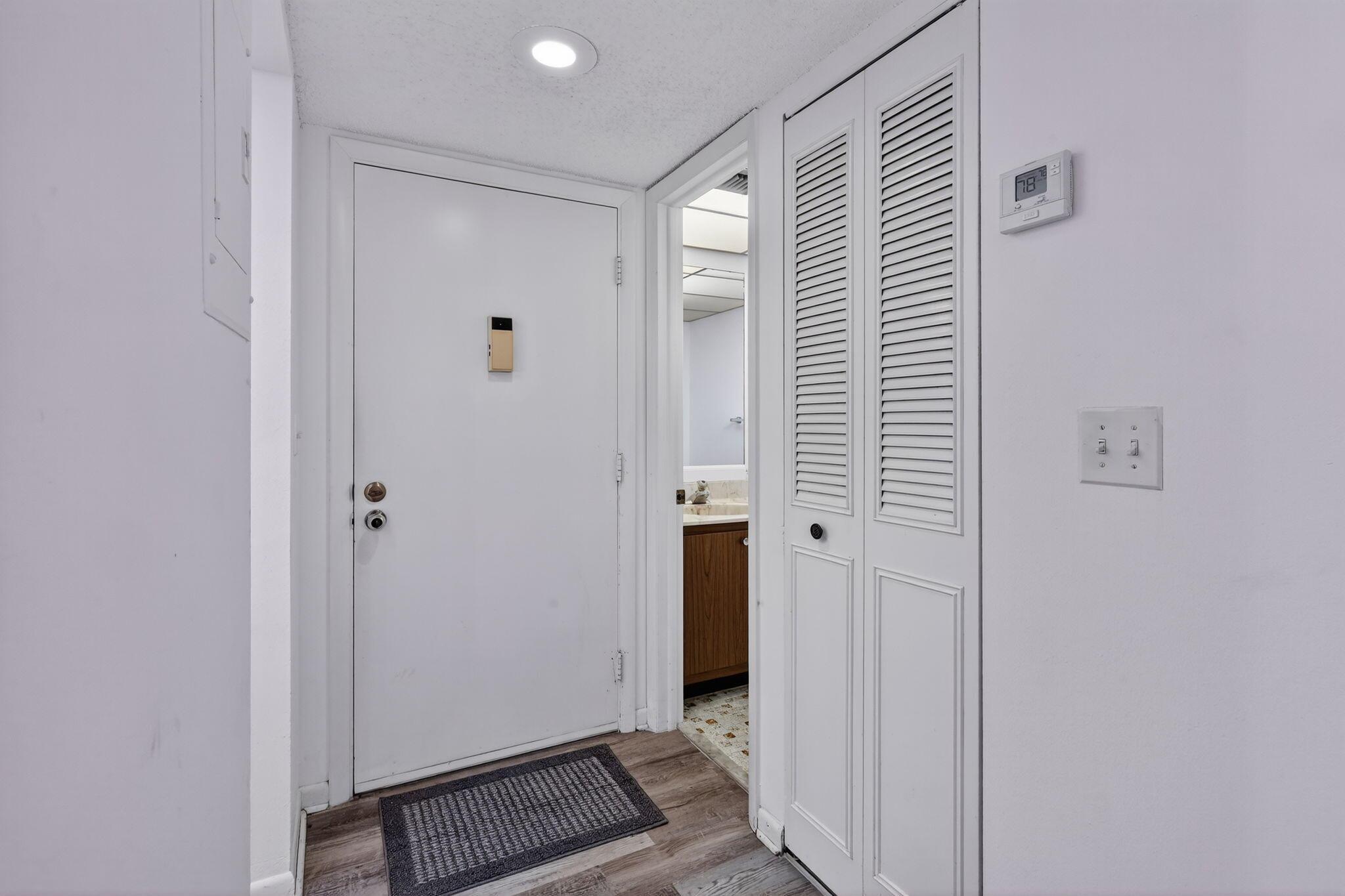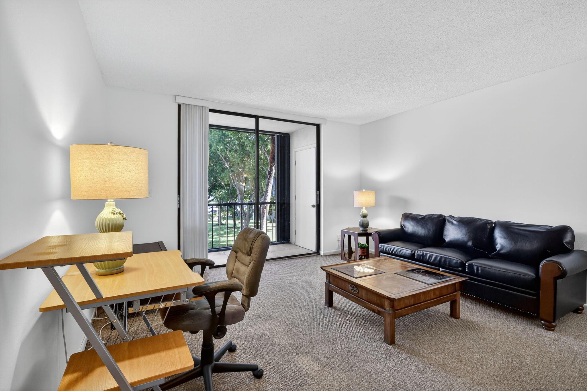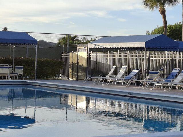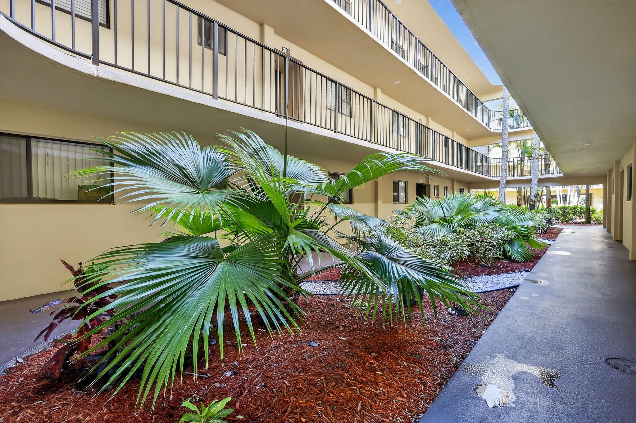 Active 55+ Building, PET FREE, Certified animals only. Beautifully updated, 1 bed., 1.5 bath condo offering serene garden views from a spacious screened balcony with Accordion Hurricane Shutters. This inviting unit features: new Whirlpool and Samsung stainless steel appliances, fresh paint throughout, new vinyl plank flooring in the kitchen, updated bathrooms with new toilets, walk-in closet with vanity area, A/C replaced in Aug. 2022. Top floor unit, elevator for easy access. Storage closet on balcony & additional community storage just steps away. Laundry facilities are conveniently located right across from the unit. Enjoy peace of mind with 24-hour guard-gated entry and security patrol. Assigned parking space, ample guest parking.