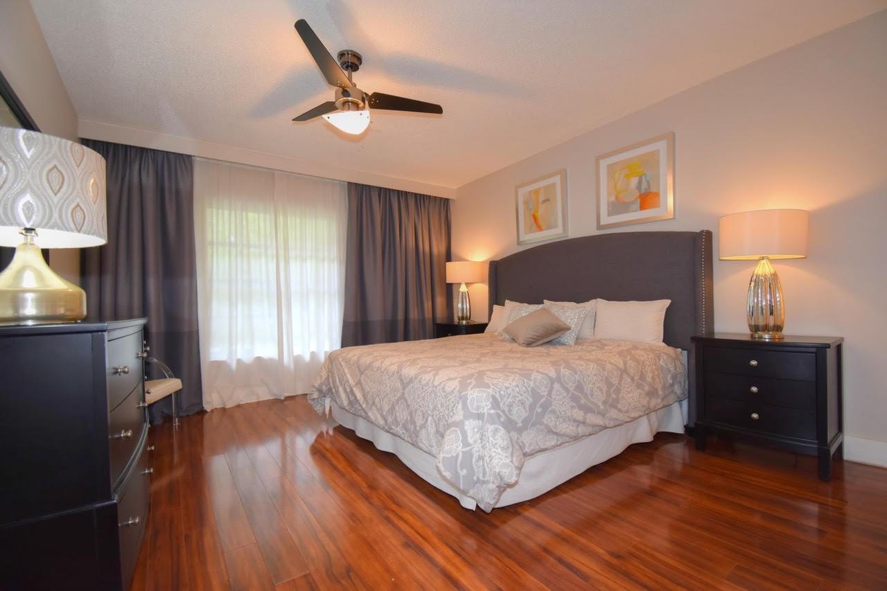 Stunning spacious one bed condo on 2nd floor with lovely private patio. Wood tone laminate flooring throughout gives the home elegance. Kitchen has beautiful wood cabinets, lovely counter, tile backsplash, breakfast bar with stools and stainless appliances. Bath and powder room have newer vanities. AC less than 10 years, Tankless Hot water. Furniture shown can remain for the buyer, including patio set, bedroom set and living room tables and television. Colonnades features oversized sparkling heated swimming pool, exercise room, fountain area with umbrellas and tables/chairs, game room, grills, and lots of bench seating throughout the community. 10 minutes to all! One parking, no renting for 2 years, no pets, ALL ADULTS RESIDING IN UNIT MUST HAVE MINIMUM 700 CREDIT SCORE.
