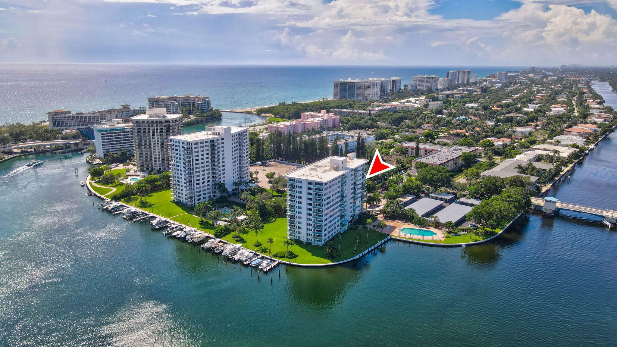Boca Inlet - Refined Waterfront Living.Residence 8F is a rare high-floor corner apartment in one of Boca Raton's most iconic buildings. This 2-bedroom, 2-bath home offers sweeping southwest views of Lake Boca, the Intracoastal, The Boca Raton resort, and the Atlantic Ocean. Bright and spacious, the residence features open living and dining areas filled with natural light. Boca Inlet has recently completed extensive renovations, including a redesigned lobby, updated hallways, and a grand fountain entry. Amenities include a waterfront pool, community room, two barbecue areas, covered parking, and on-site management, with boat slips available when offered. Ideally located near The Boca Raton Resort and Beach Club, South Inlet Park, Mizner Park, and Royal Palm Plaza.