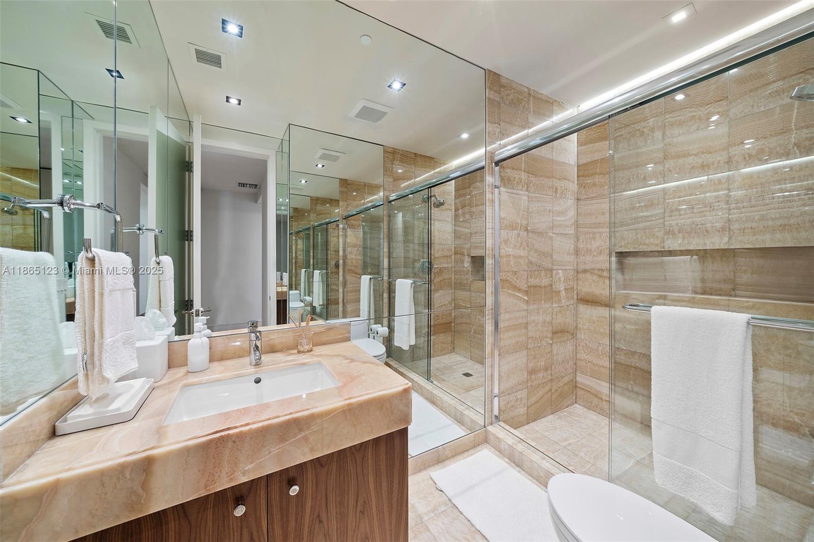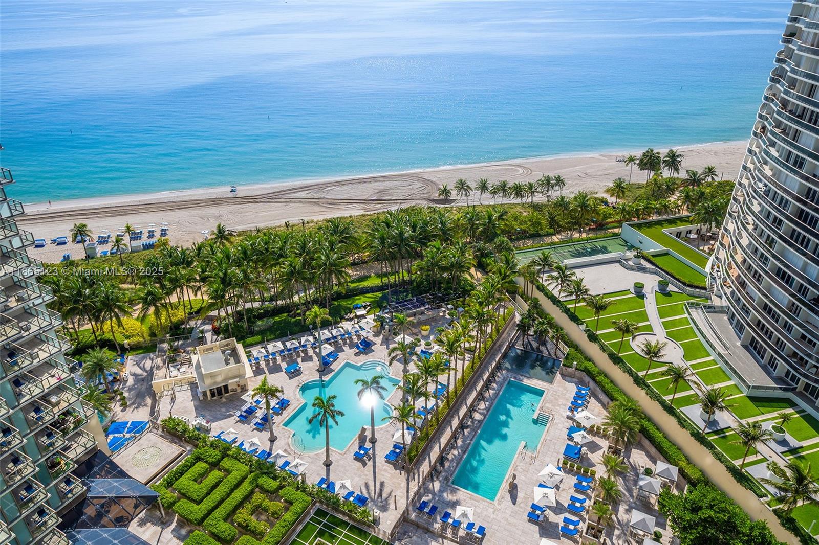 Nestled in the heart of Bal Harbour, St Regis rises from the turquoise waters of the Atlantic along its white sand beaches in the city’s most coveted location. One of only seven “Mayfair” units in the tower, the layout features an impressive 47' of ocean frontage with living, dining and a family room in addition to a city-side den. Fully customized with luxury appointments including marble and hardwood floors, a chef's kitchen, wardrobes and decorative elements all by Poliform, lavish onyx baths, and smart home automation. With a nearly 4000sf interior and 1250sf of outdoor space overlooking the ocean, intracoastal and downtown-skyline, the residence is ideal for families and entertaining. 5-Star amenities and services with on-site dining and the Bal Harbour Shops outside your front door!