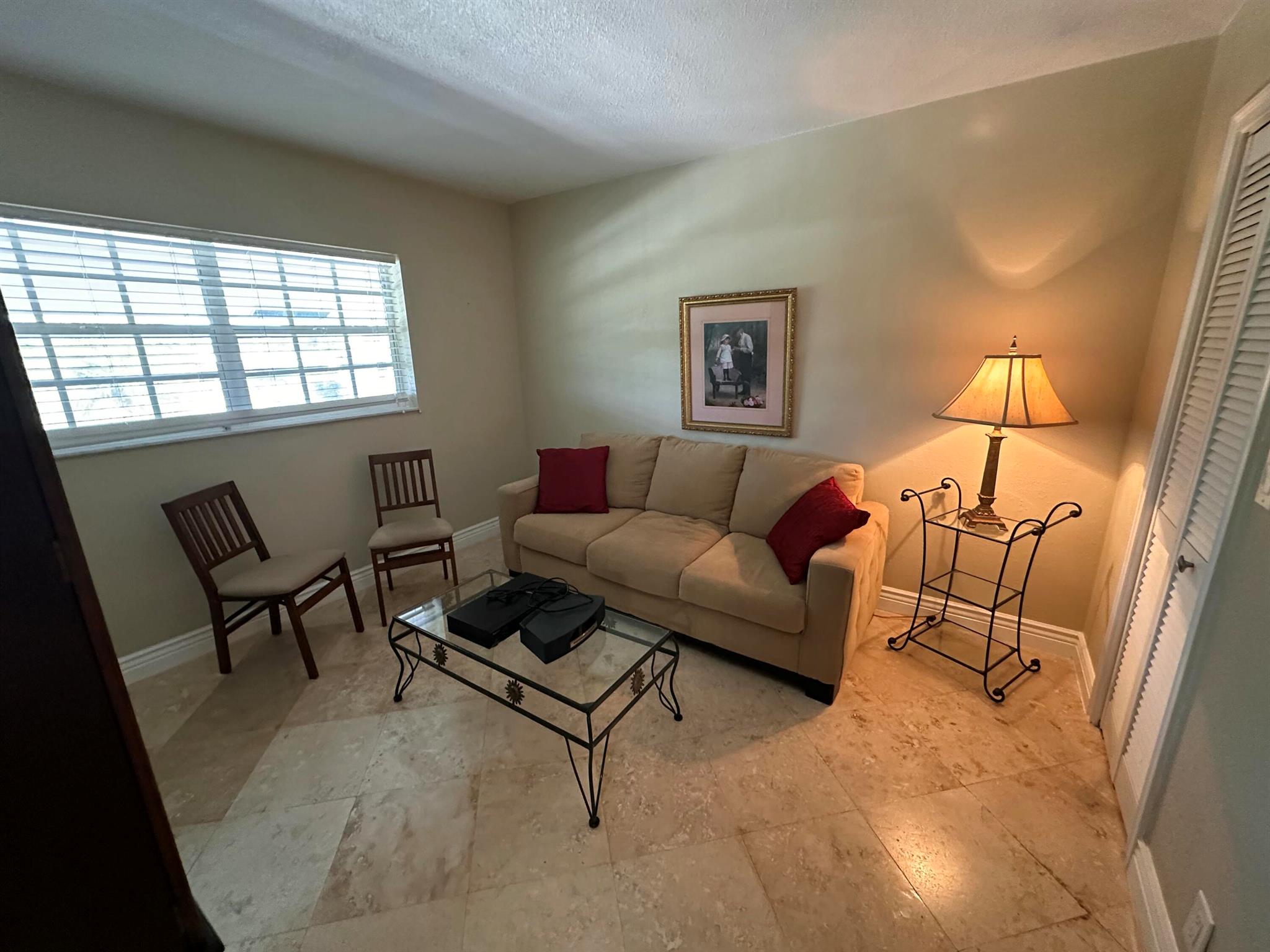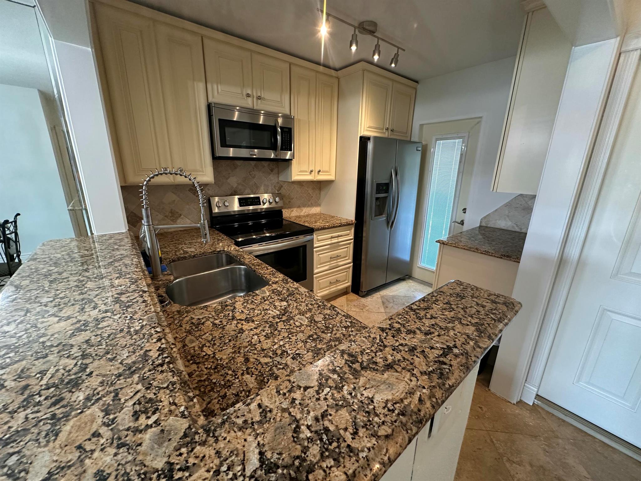 Third floor, 2 bedroom 2 bath unit. Updated kitchen and bathrooms. Kitchen has been opened up to the living area giving the unit a larger feel. Stainless steel appliances and granite counter tops. Travertine floors throughout the unit.