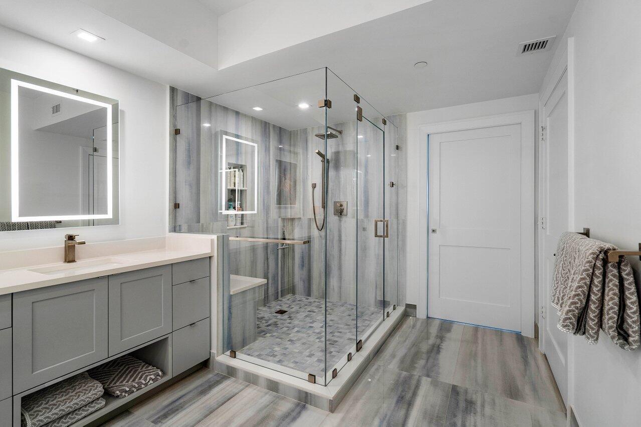 Beautifully updated 14th floor END UNIT w/2BR + den, 2BA overlooking the Intracoastal, impact glass, semi-private elevator access. Open concept, split floor plan with spacious owners suite w/his & her walk-in closets. Amazing primary bathroom w large walk in shower, glass enclosure, modern finishes with a spa like feel! New doors throughout, neutral paint & fully tiled. plantation shutters & a newer A/C unit! Assigned garage parking & climate-controlled storage unit. 24/7 manned gate, valet. Newly renovated rooftop oasis w/pool, spa, BBQ areas, tennis/pickleball. Walking path w/gazebo, clubhouse, billiard room & fitness center. Adjacent marina w/dry docks available, minutes to ocean; no fixed bridges! Pet friendly & social community. Seller will consider 50% seller financing, up to 3 yrs