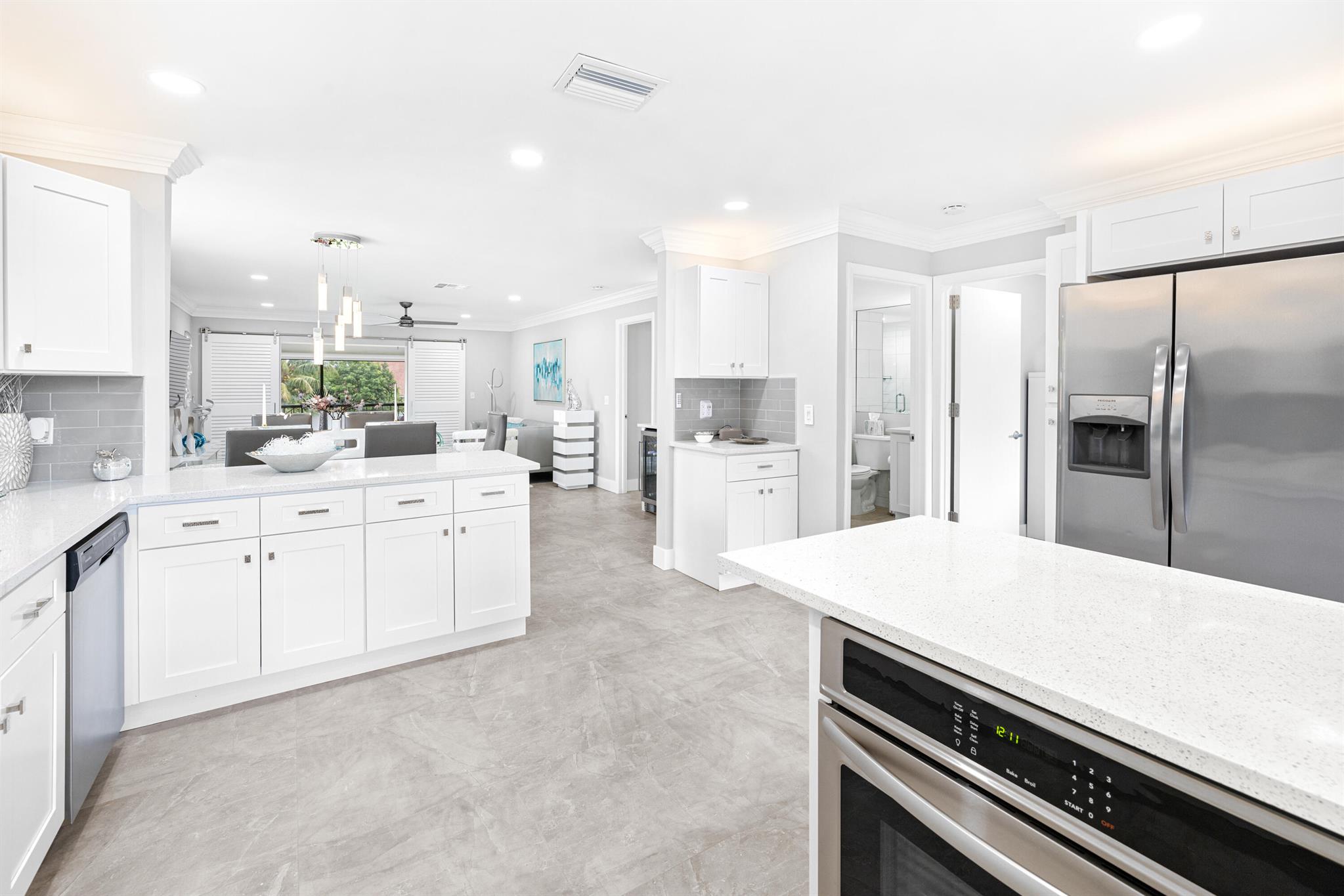 Excellent opportunity to own a stunningly renovated turnkey 2BR/2BA corner unit in Boca Lago. Offering serene golf course view, natural light, and total privacy. Elegant open layout with a designer kitchen, soft-close cabinets, Frigidaire appliances, and sleek wet bar--perfect for entertaining. Spacious primary suite with double sinks, walk-in closets, and a tranquil view. Enjoy the enclosed patio with option for open-air living. *THIS PRICE INCLUDES FURNITURE/DECOR.Upgrades include:- New Samsung washer/dryer- Nest thermostat- New roof (no assessments)- Storage room- Uniform flooring throughout- New window treatmentsAmenities: Clubhouse, pool just steps away.Prime location near Town Center Mall, premier dining, I-95 & Turnpike.