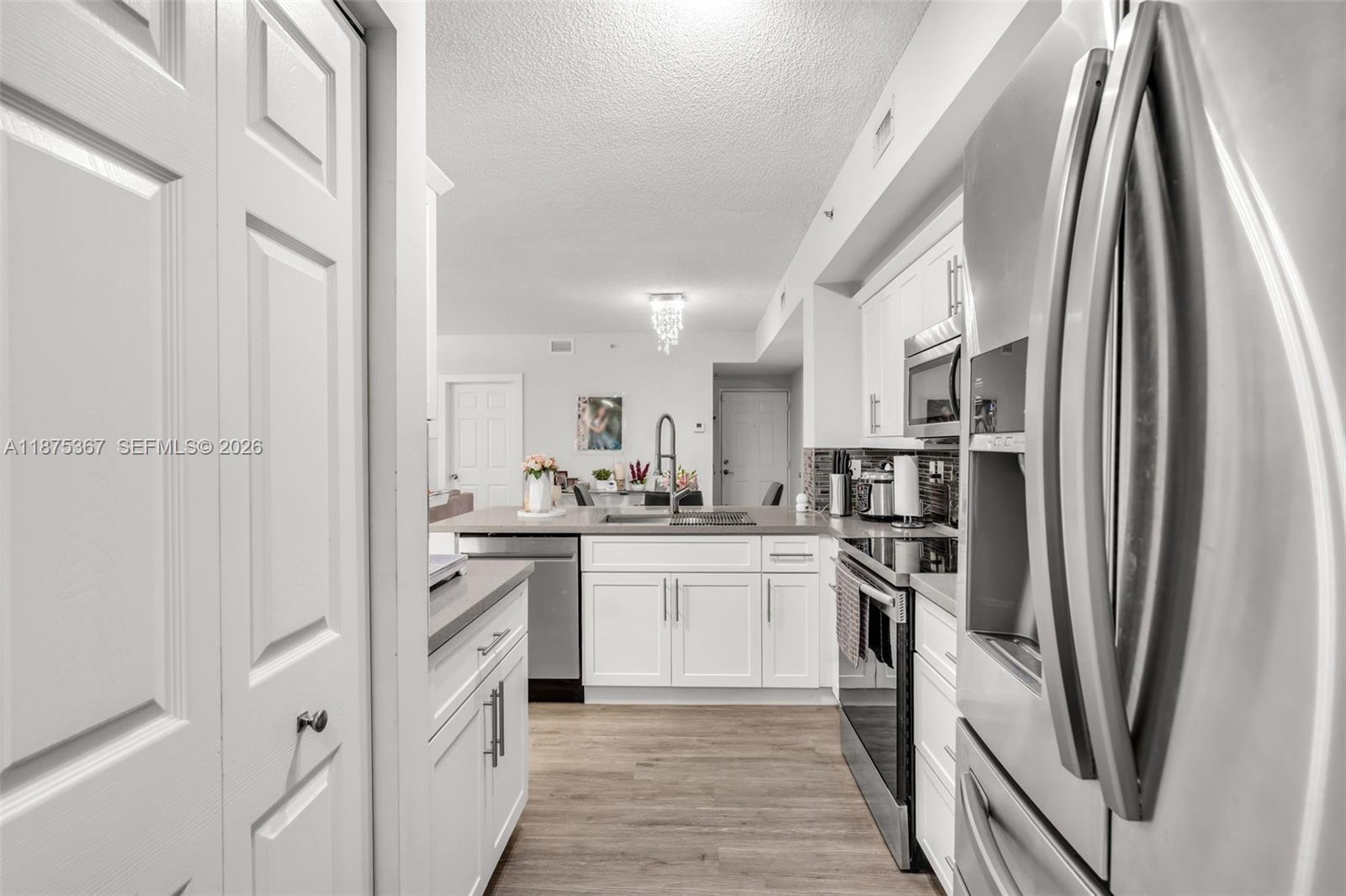 Rare corner 3-bedroom condo with private garage in a gated resort-style community. This spacious unit features an updated kitchen with stainless steel appliances, in-unit washer and dryer, and a private balcony overlooking the tennis courts. Recent improvements include a new roof (2025) and newer A/C, offering peace of mind for years to come. Includes two assigned parking spaces plus a private 1-car garage with an additional space in front (parking for up to 4 vehicles, a rare find). The gated community offers resort-style amenities including pool, fitness center, tennis courts, playgrounds, and overnight security. Water included in HOA. Conveniently located near shopping, dining, and major highways. Eligible for conventional financing with as little as 5% down (subject to lender approval).