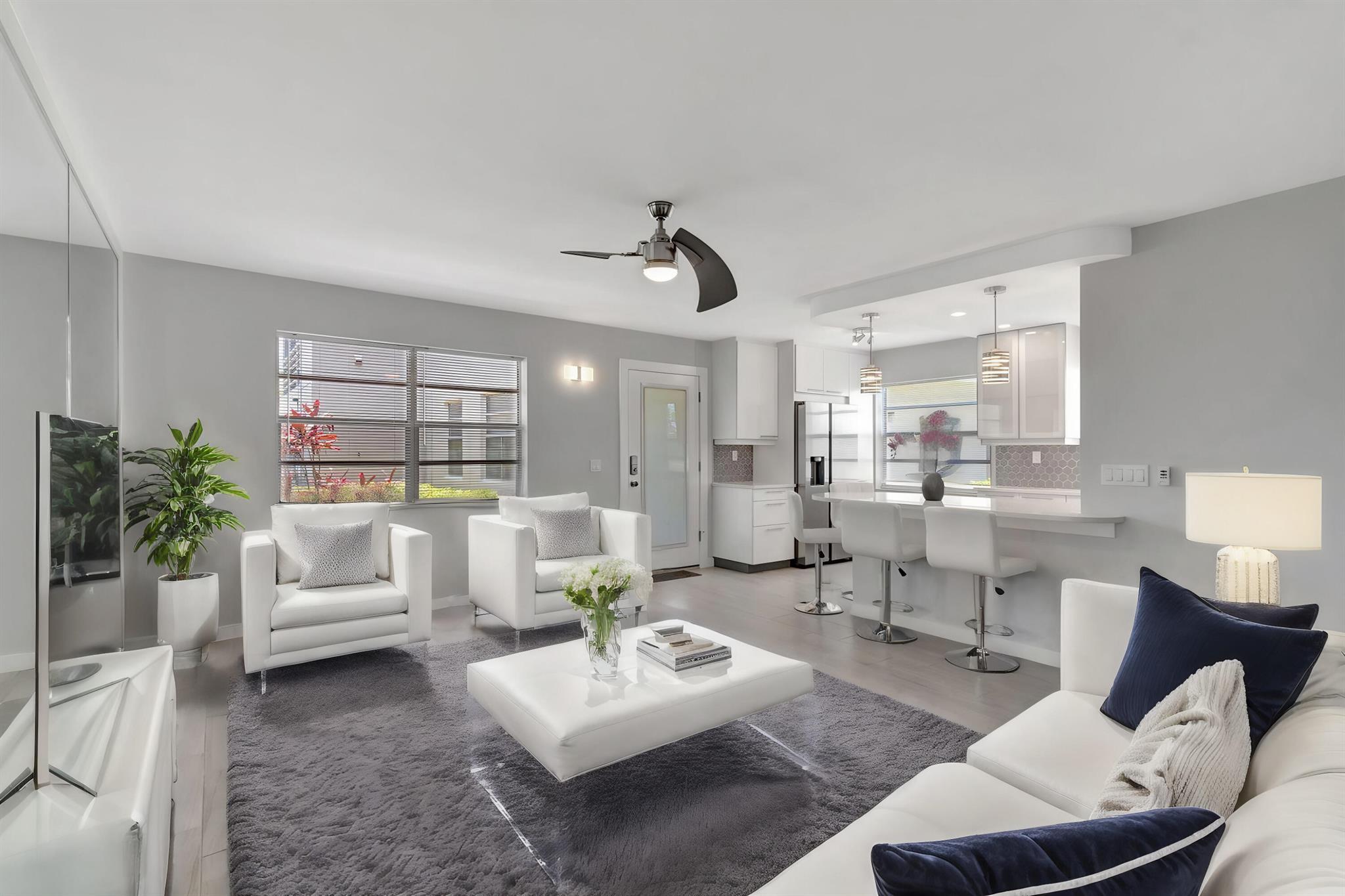 Welcome to 164 Normandy Lane, Delray Beach. This rarely available ground-floor corner condo is fully remodeled and move-in ready. Enjoy serene golf course views, impact glass, and elegant porcelain tile throughout. The spacious primary suite offers a warm, inviting retreat, while the updated kitchen features modern cabinetry, quartz counters, and stainless steel appliances. Both bathrooms have been tastefully redone with a spa-like feel. Conveniently located near the entrance with easy parking, this 55+ community offers world-class amenities including golf, tennis, pools, pickleball, fitness, clubs, cafes, and more. Perfect for the buyer seeking style, comfort, and convenience in a vibrant active-adult lifestyle.