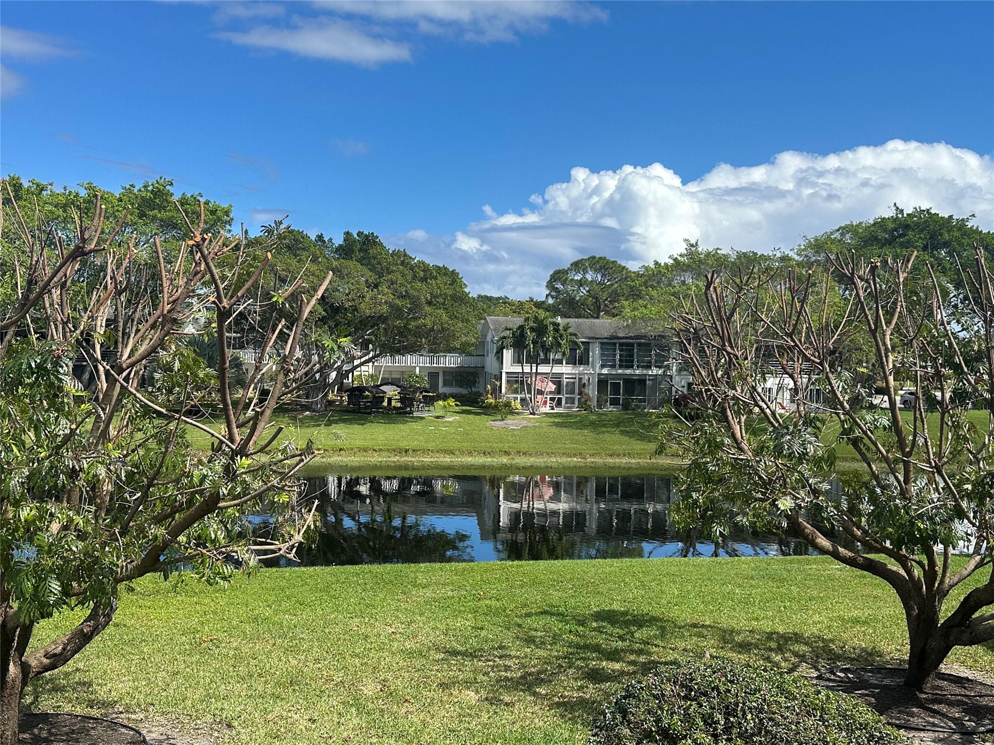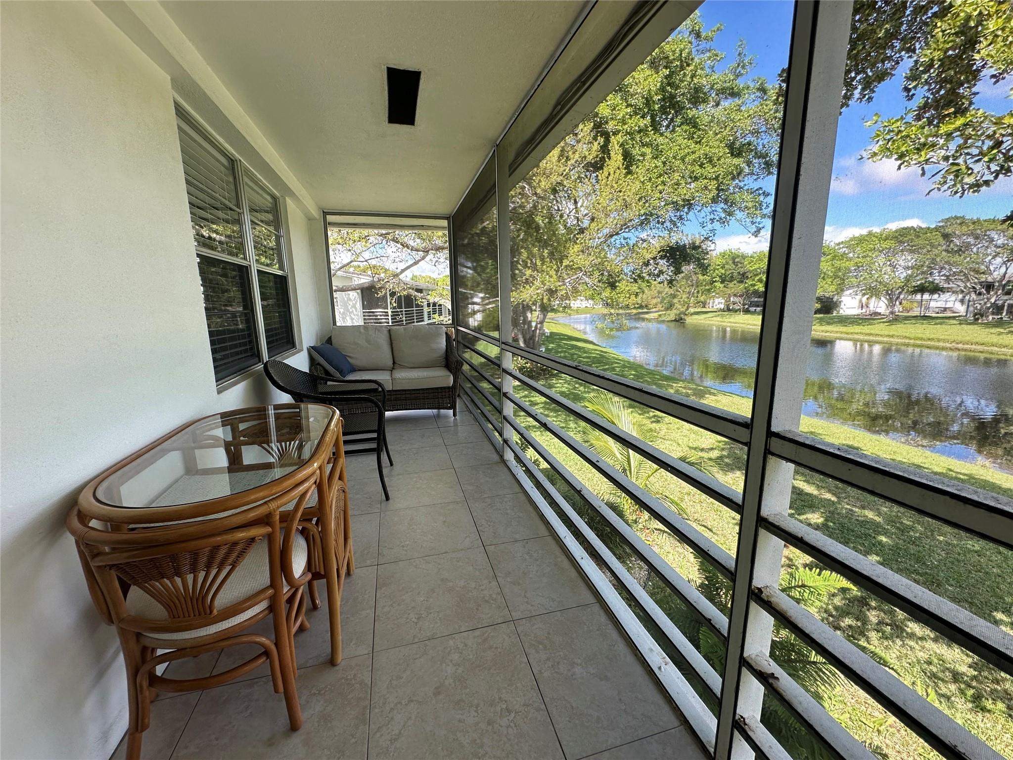RARE CORNER w/ a beautiful VIEW OF THE LAKE! This bright & updated 2 bdrm, 1.5 bath on the 2nd flr comes furnished & has nice upgrades incl tile thru-out, NEW ELECTRICAL PANEL, remodeled kit w/white kit cabs, butcher block cntr tops & recessed ltg & updated bathrms w/tub/shower in primary! Enjoy a cup of coffee on the screened patio overlooking a serene view of the canal w/ BEAUTIFUL SUNRISES! Bldg has a NEW ROOF! Located in the highly sought-after Century Village, an active 55+ gated comm w/24 hr sec, residents enjoy resort-style living w/an array of amenities incl pools, tennis, pickleball, putting green, classes, clubs, billiards, theater, movies & MORE truly making every day feel like a luxury retreat. Don’t miss this opportunity to experience comfort & convenience! Assoc. Claims 55+