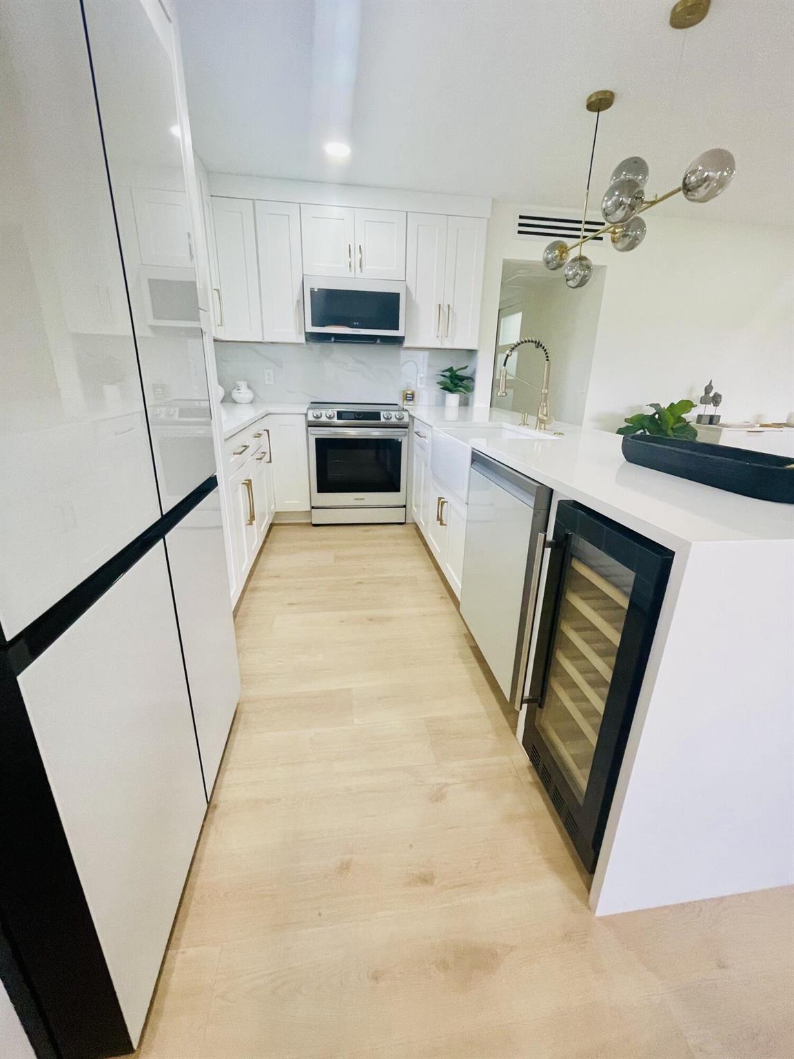 This is a must see new and custom designed CORNER VILLA! Stunning quartz countertops w waterfall, designer backsplash w matching under counter design. Real wood soft close cabinets, garbage pull out, double pantry with extra storage.Large fireclay apron sink w/ Kraus faucet built in air switch and soap dispenser.30 bottle built in wine fridge.High end Bespoke Samsung appliances are all brand new. Engineered hardwood flooring throughout.Spa like frameless shower bathrooms.Frosted glass pocket door separating bedrooms for an ensuite feel. Recessed lighting throughout, ceiling fans and designer chandelier.AC,Water heater,Nest A/C brand new.HVHZ rated sliders with built in blinds.Beautiful large 48 x48 Italian tile on the enclosed A/C patio where you can enjoy sunsets on the water.