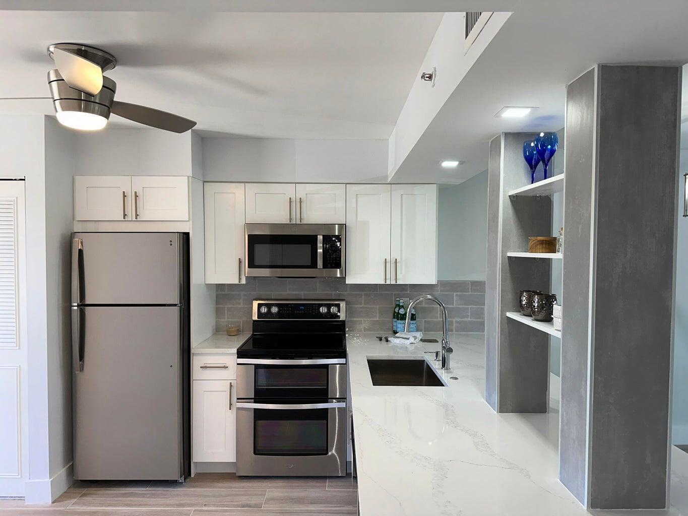 SELLER TO CONTRIBUTE $10,000 TO BUYER AT CLOSING, TO BE APPLIED TOWARD CLOSING COSTS OR ALLOWABLE EXPENSES. Enjoy the PALM BEACH LIFESTYLE for the season or year-round in this 2 bed/2 bath condo overlooking waterways. Completely updated with MODERN TOUCHES. Kitchen open to living spaces with WATERFALL QUARTZ COUNTER and DECORATIVE SHELVES. Spacious bathrooms with FLOATING VANITIES and PEBBLESTONE SHOWER FLOOR as well as MARBLE-LOOK WALL TILES. Gorgeous light-colored WOOD-LIKE TILE FLOORS give the feel of a beach cottage. MODERN CHANDELIER and LIGHT FIXTURES complete this condo updates. Close to houses of worship, shops, restaurants, Delray beaches, nightlife of Atlantic Ave and Delray Marketplace. Villages of Oriole Bonaire is a quiet enclave which offers clubhouse, pool, fitness center.