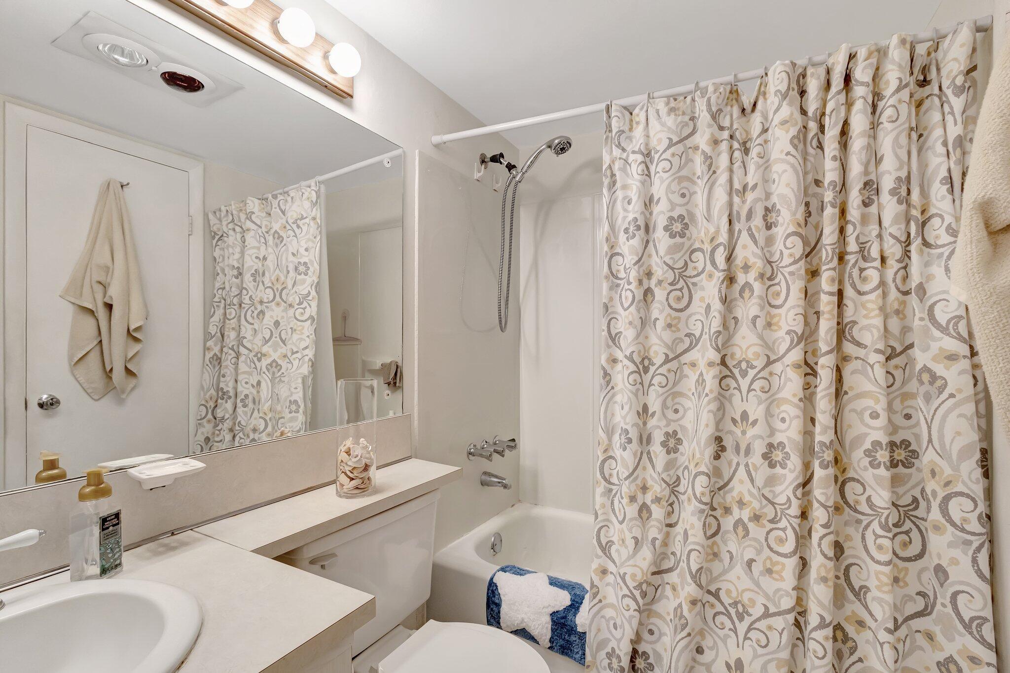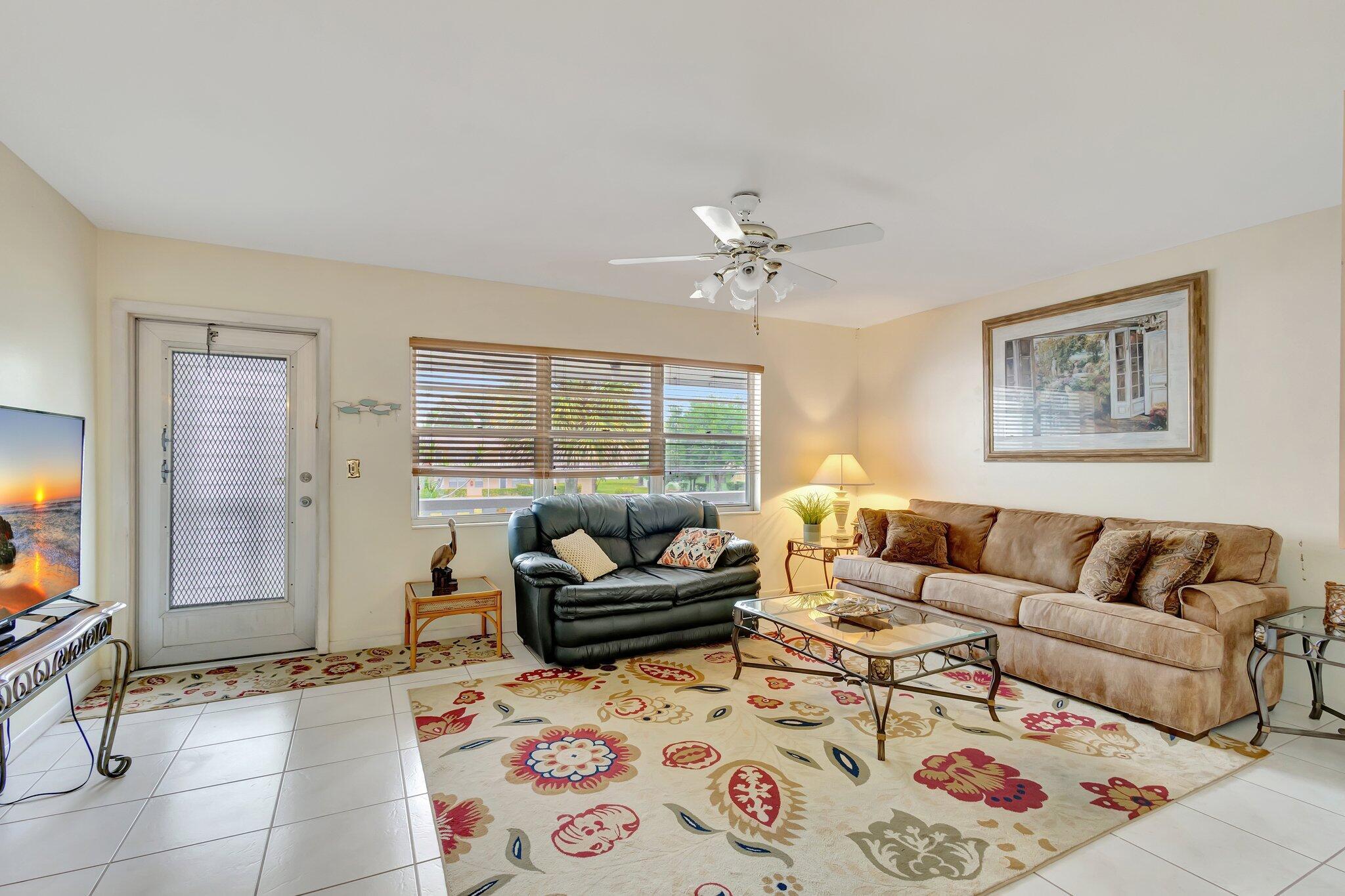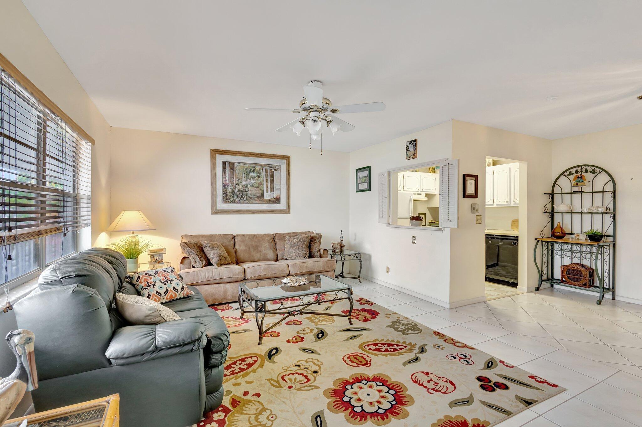 LIGHT AND BRIGHT 1 BED 1.5 BATH FURNISHED SECOND FLOOR CORNER UNIT LOCATED IN THE SOUGHT AFTER CENTURY VILLAGE OF W.P.B. A GATED COMMUNITY FOR ACTIVE ADULTS 55+. LARGE 16 INCH TILED FLOORING THROUGHOUT, VENTED AIR , COMFY FURNITURE, . THE BEDROOM HAS AN ENSUITE BATH. WELL MANAGED ASSOCIATION.Roomy closets,, laundry room, assigned parking spot plus visitor parking available; local bus for errands/shopping both within & outside the Village. COME AND ENJOY RESORT STYLE LIVING. CLUBHOUSE features a theater ndoor pool, card room, community/party room, billiard room ,shuffle board ,tennis , pickleball ,bocce and two bocce and two outdoor pools. Numerous heated outdoor pools throughout the community. Separate fitness center with gym , outdoor heated pool and a resistance pool. Two guarded gat