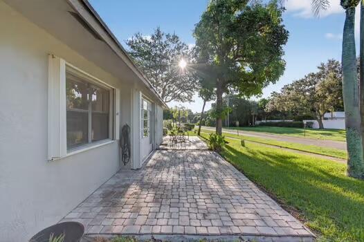 Welcome to Chanteclair Villas, a hidden gem, quiet and pet-friendly 55+ community in Boynton Beach. Roof (2016), AC (2018), Home offers an attached 1 car garage and is complete with ACCORDION shutters. Kitchen updated with easy close doors and stainless steel appliances. This villa features a split floor plan with 2 bedrooms and 2 beautifully remodeled and updated bathrooms. The large primary bedroom has a walk in closet and an en-suite bathroom with a linen closet. Home also offers a nicely finished Florida room under AC for additional comfort! The extended outside patio covered in a warm natural tone paver allowing the perfect space for relaxing and enjoying. Chante lair Villas offers two heated pools and a clubhouse with social activities. The villa is just steps from the pool.