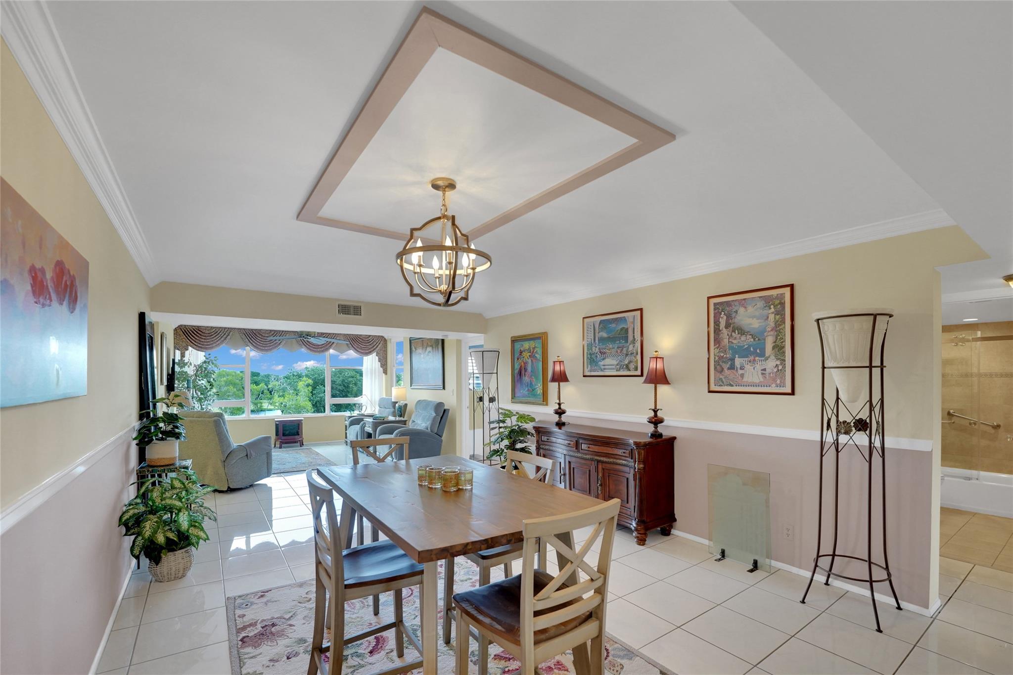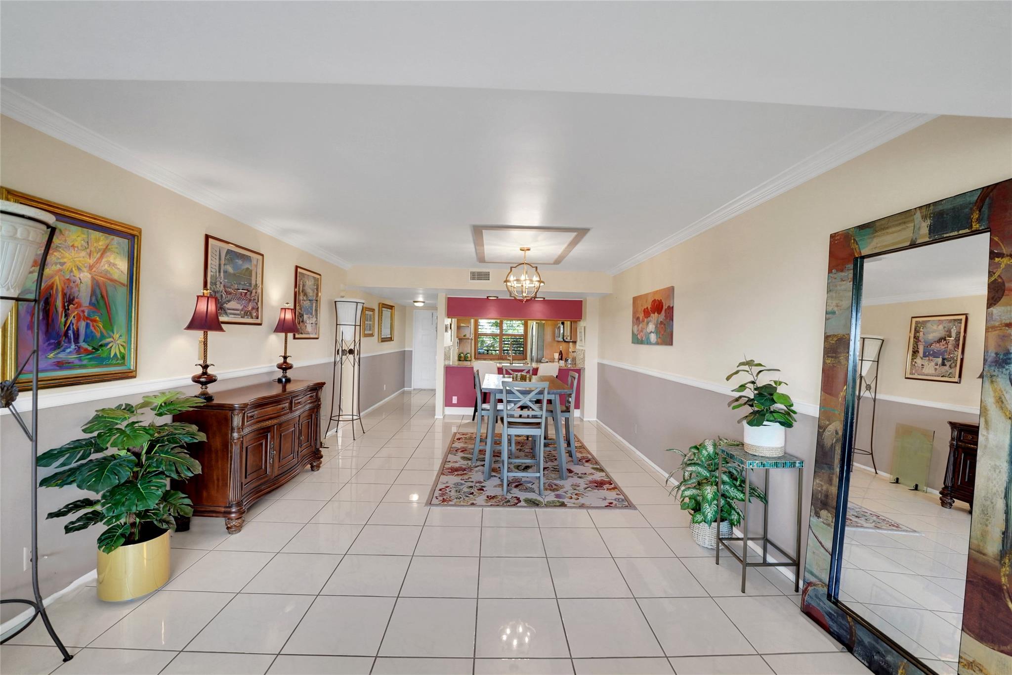 Stunning Cypress Reach 2/2 plus bonus room has nearly 1,400 sq. ft. of living space overlooking a panorama of golf course & water views. 5th-floor (top floor) residence has 0 neighbors above & only 1 next door. Open floor plan features white tile in living area, kitchen with granite countertops and pass-through bar seating. Extras include: Impact glass windows throughout, crown molding, chair railing, Plantation shutters, and wood flooring in bedrooms. Office/den has built-ins and lovely lake view. Primary bedroom features renovated shower and California walk-in closet; guest bedroom has custom built-ins and California closet. HVAC (2023) with UV light system. Secure gated community with pool and clubhouse—5 minutes to Publix, Skolnik Center & Brummer Park with tennis, pickleball and more.