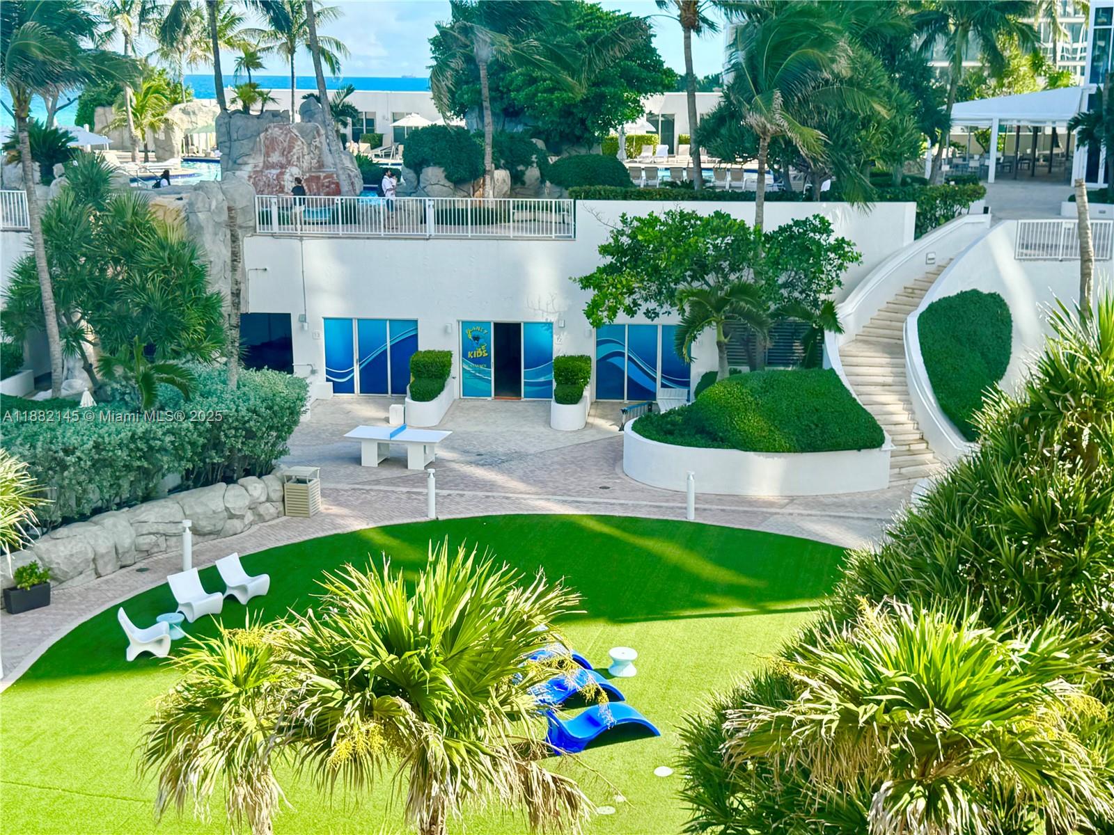 Oceanfront Trump Palace a beachfront resort in Sunny Isles Beach, 2/2.5 offers ocean and pool view. Porcelain floor. Ocean, beach, tennis court, dog park, gated entry with a 24-hour attendant; a two-story lobby, two lagoon pools Jacuzzies, 8,000-square-foot spa - fitness center with saunas, steam rooms, massage room, classes. Kids room, mini business center, coffee:) Professional Concierge Service, Valet parking. Oceanfront oasis, complete with its own private and pristine beach and grotto-style pool Beach service - chairs, towels. Trump International Hotel is next door with a few restaurants. Publix, school, shops and more just across the road. Maintenance $2,237/month.