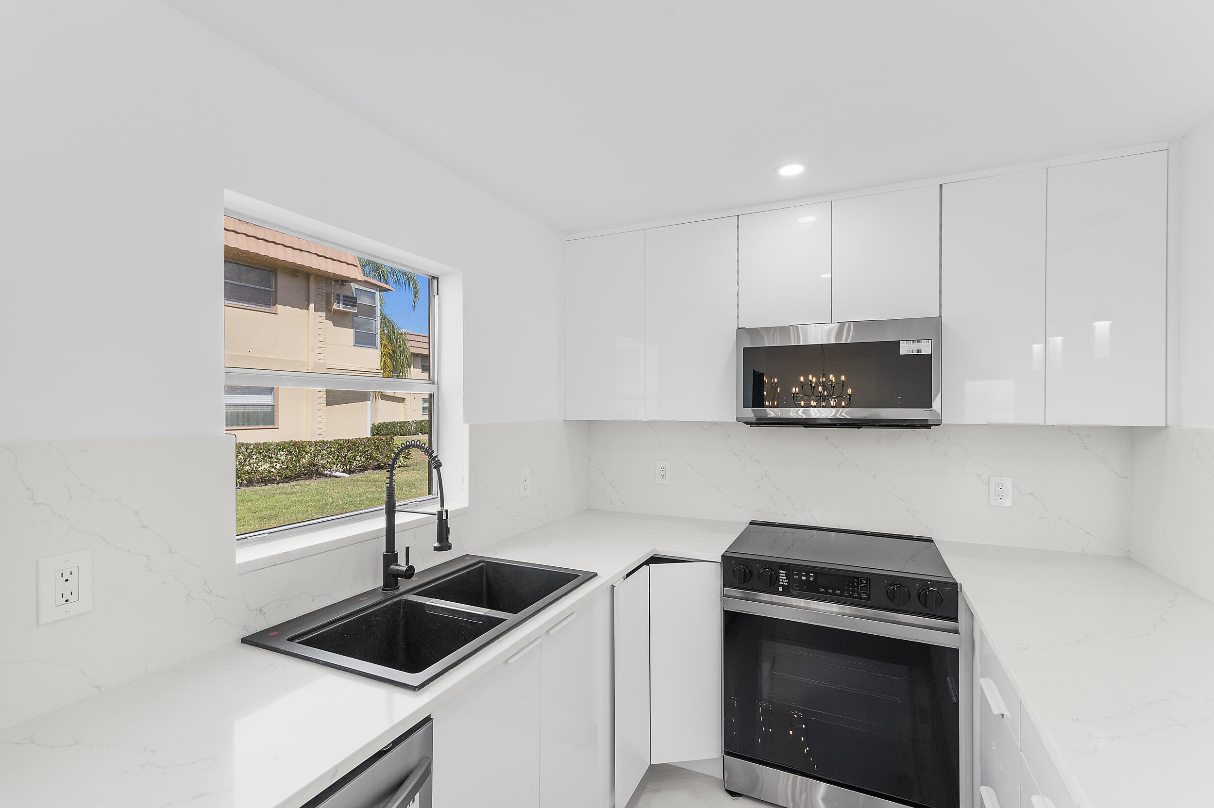 Welcome to your 2 bedroom/2 bathroom Ground floor unit . Fully Renovated all new porcelain flooring open kitchen recessed lighting quartz countertops stainless steel appliances Ac 2019 water tank 2021 this home is ready for its new owners! Saxony E building is very peaceful and a quick walk to Publix, Walgreens & steps from places of worship !This building is fully funded. Relax and indulge in the resort-style amenities of Kings Point which include: two 18-hole golf courses; indoor/outdoor pools, tennis, fitness studio, pickle-ball, etc. State-of-the-art theatre plus dining at East End Cafe and The Bistro. 24 security gate and courtesy shuttle for comfort and convenience. Come check it out!