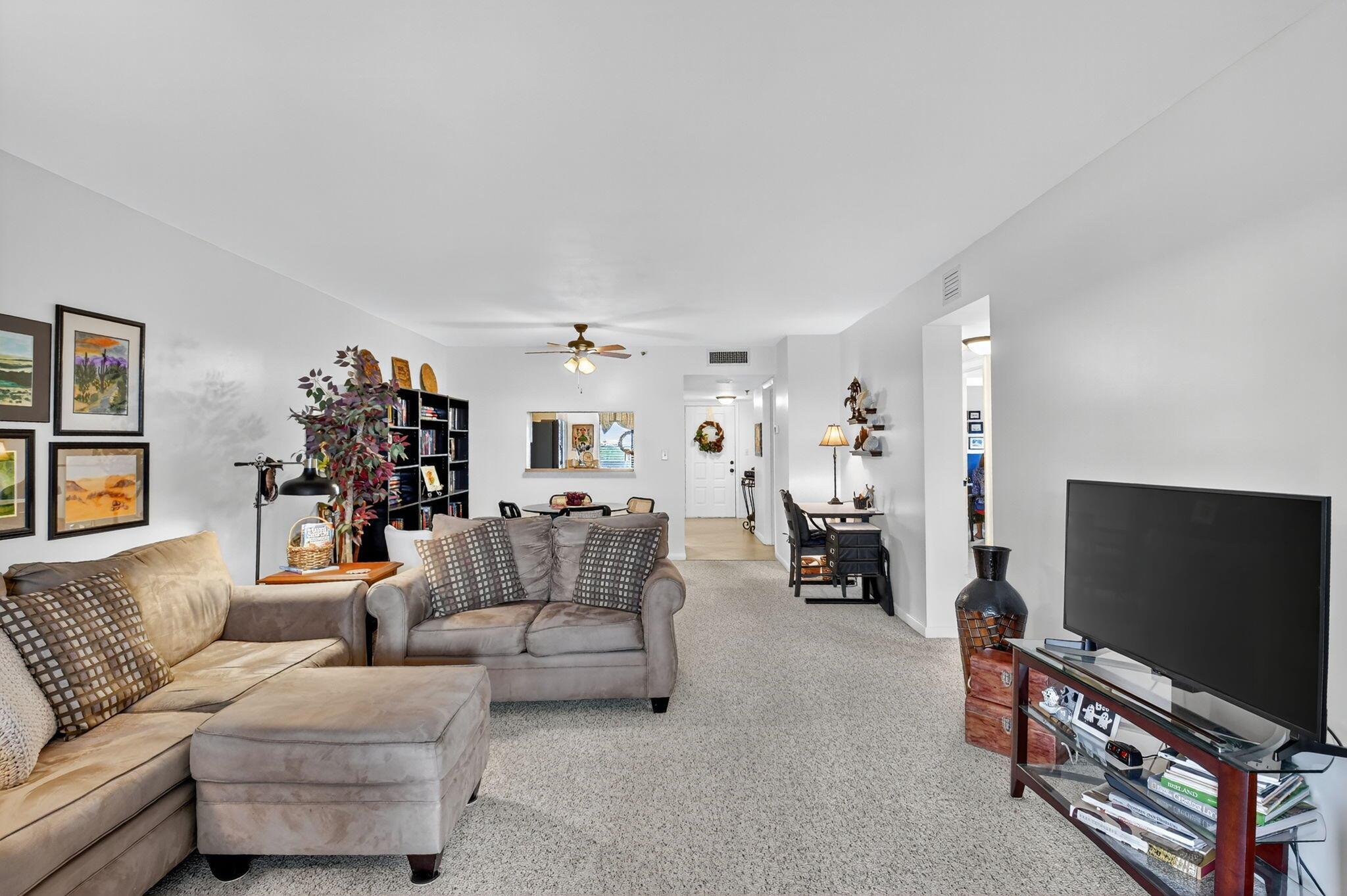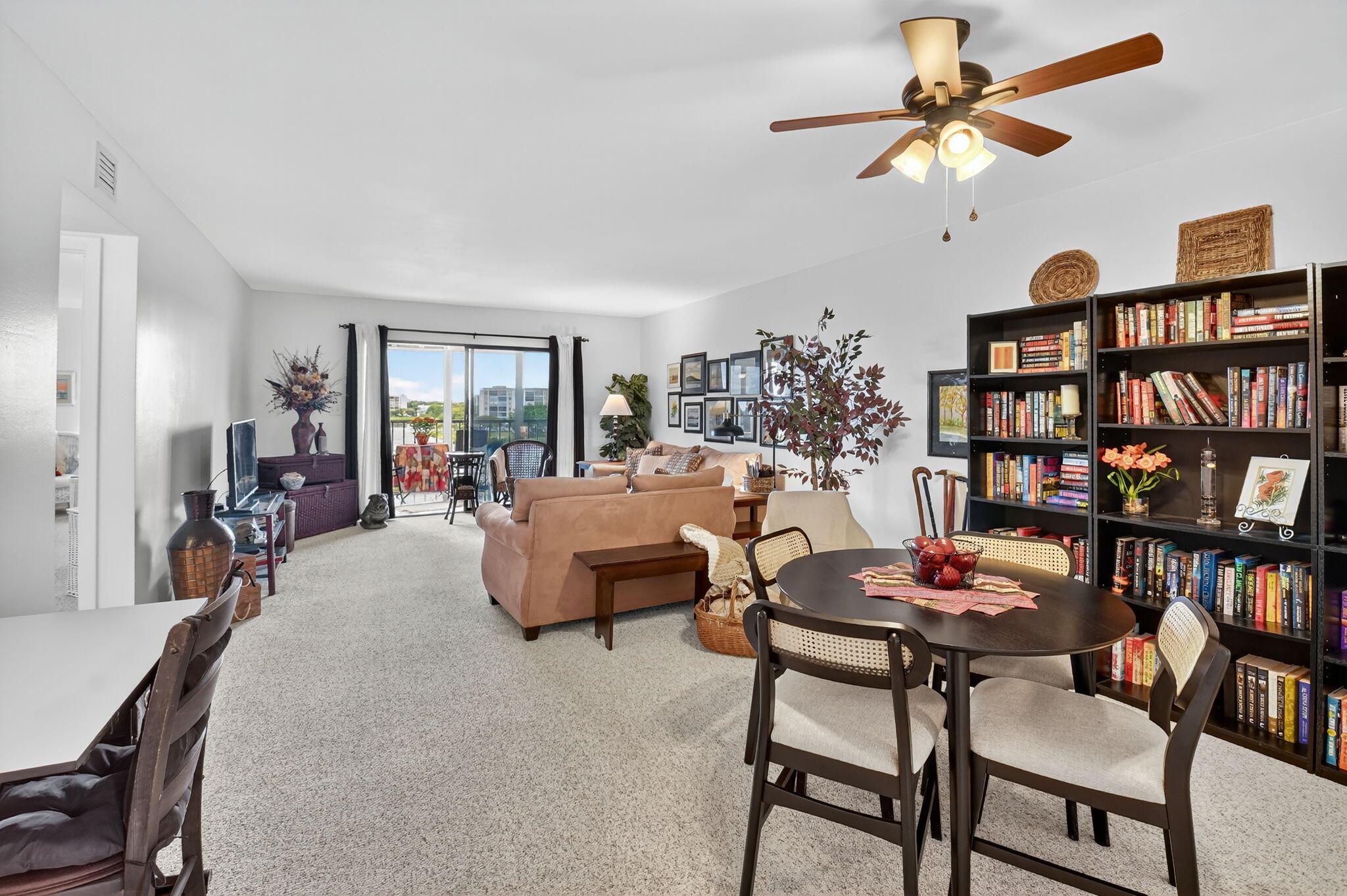 Experience resort-style 55+ living in this bright & spacious 2BR/2BA CORNER unit. Enjoy breathtaking sunset & lake views from the oversized 6th-floor balcony. The large primary suite features two walk-in closets & a comfortable sitting area. An extra window fills the room with natural light. A separate, interior laundry room includes a full-size washer & dryer for added convenience. The original but roomy kitchen offers new appliances, a generous pantry, and plenty of storage. An additional private storage closet is located just outside your front door. The community boasts a newly renovated clubhouse with pools, tennis, pickleball, theatre, game rooms, live shows & a full calendar of clubs and activities. Ideally located, this home blends comfort, convenience & an active lifestyle.