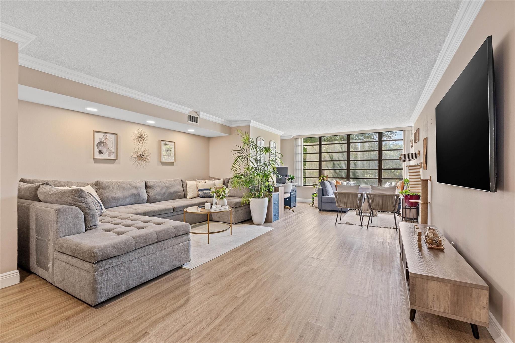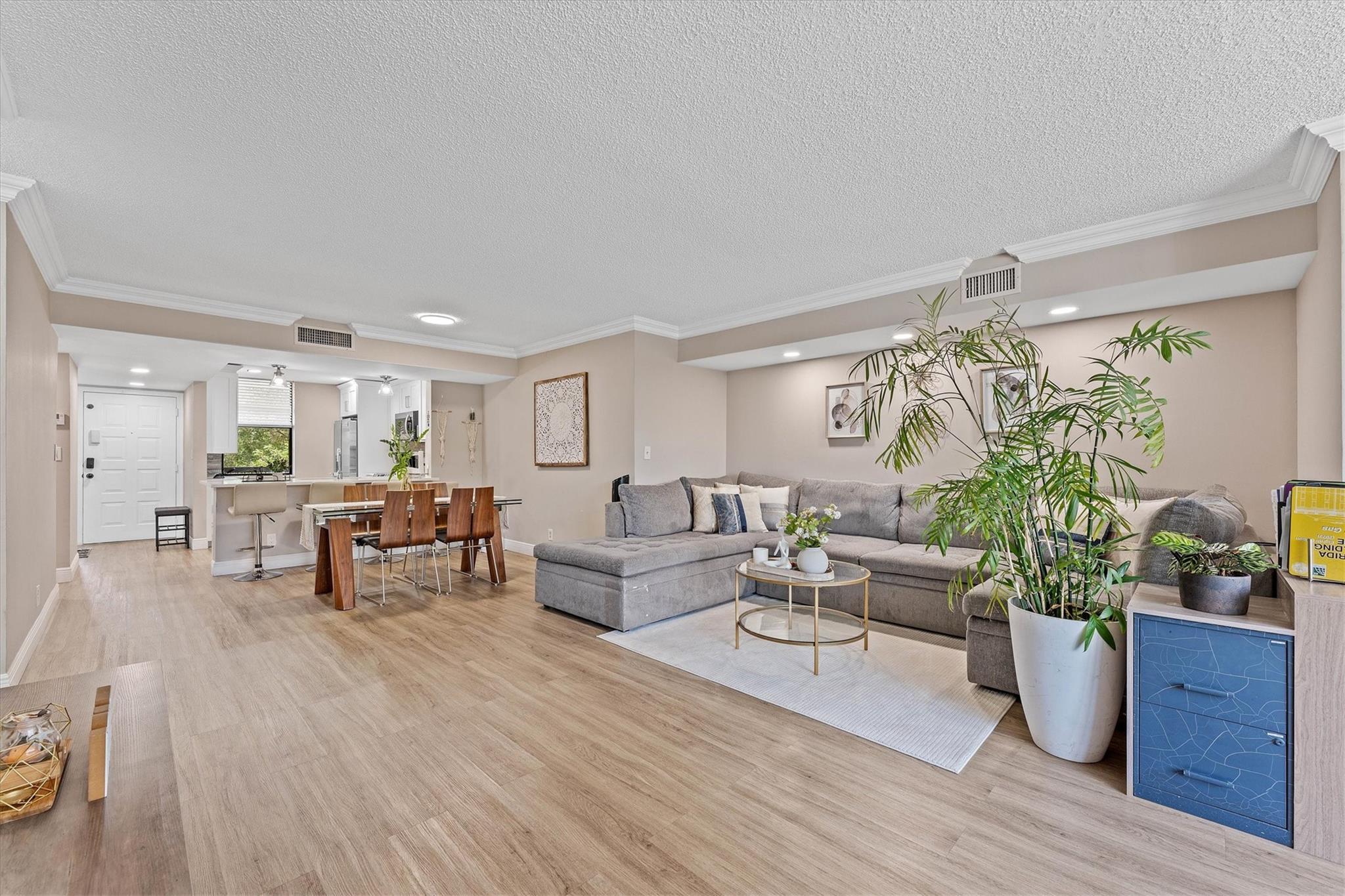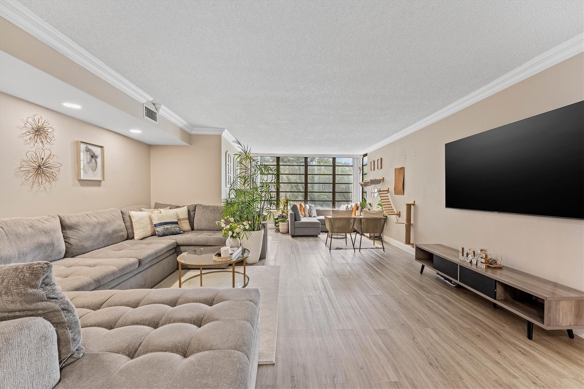 Imagine coming home with the most breathtaking views of water and preserve, quiet, and exactly where you want to be. Step inside your corner unit in your tastefully remodeled property. Sunlight pours across a bright, open layout in an upgraded kitchen with New SS appliances and quartz countertops. A stylish bar area in the entryway includes two wine coolers and additional storage. Fully upgraded bathrooms and floors with baseboard and crown molding throughout. The primary suite offers a walk-in closet and en-suite bath with walk in shower. New A/C and Water Heater. Great Township amenities offer pools, jacuzzi, sauna, fitness center, movie theater, tennis courts and much more. Great location just minutes away from the Promenade Mall, Turnpike. 40 Years Certificate, New Roof. NO Special ASS