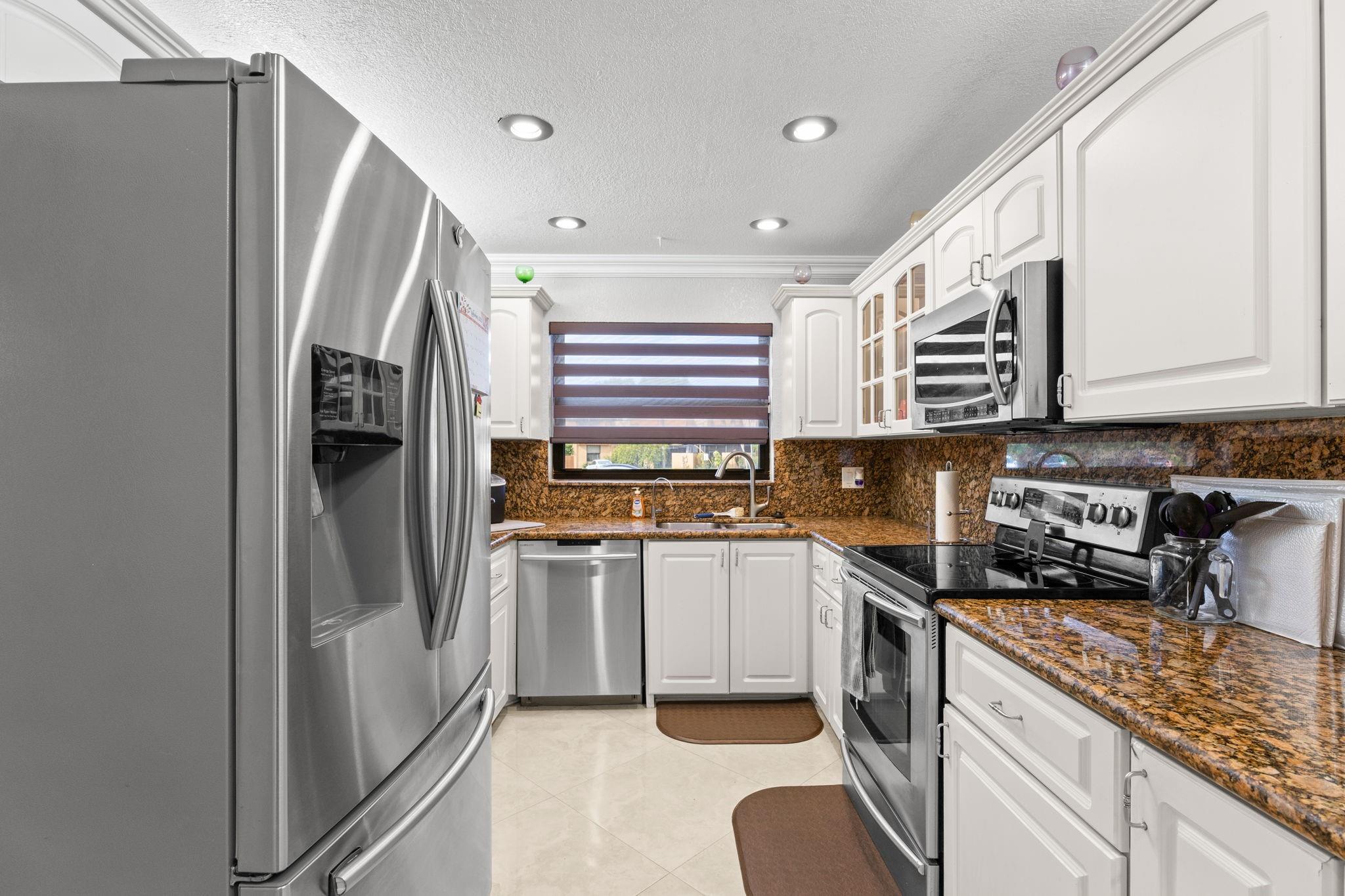 This exquisitely remodeled lakefront townhome features an updated kitchen with granite counters and stainless steel appliances. Every corner of this home is graced with designer touches that create an ambiance of sophistication and elegance, including designer lighting, crown moldings, updated tile flooring, and remote-control shades. Additional upgrades include a tankless water heater, impact windows and doors, and a three-year-old central air conditioning system. The second level boasts a master suite with a spacious walk-in closet, along with two additional bedrooms and one bathroom. Enjoy serene moments on the screened patio or take advantage of the community's multiple pools, clubhouse, fitness room, and tennis courts. Monthly maintenance includes cable and internet.