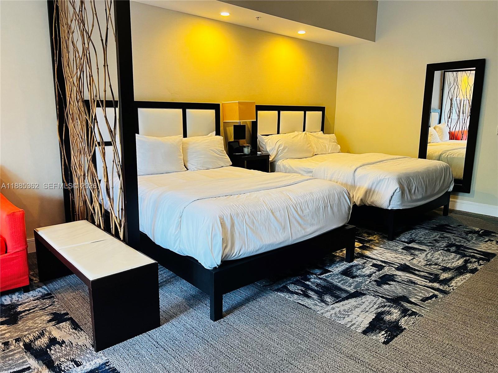 Beautifully fully furnished Condo/Hotel, Studio 705 Sq.Ft. kitchen, balcony, 1 full bath, shower and tub, Resort style, pool, spa, fitness 24 hours, excellent restaurants across from downtown Doral, at walking distance. NO CARPET, NEW PORCELINE, New washer/dryer, dishwasher. Condo Association fee includes all utilities. enjoy a full list of massage and beauty service an equipped 24-hour fitness center. Owner can occupied 6 months and rent the rest of the year with the hotel program or by him self, some restrictions apply. Just steps away from Trump National Golf, city place and Downtown Doral. Condo fee include: Water, electricity, cable, internet. Easy to show.