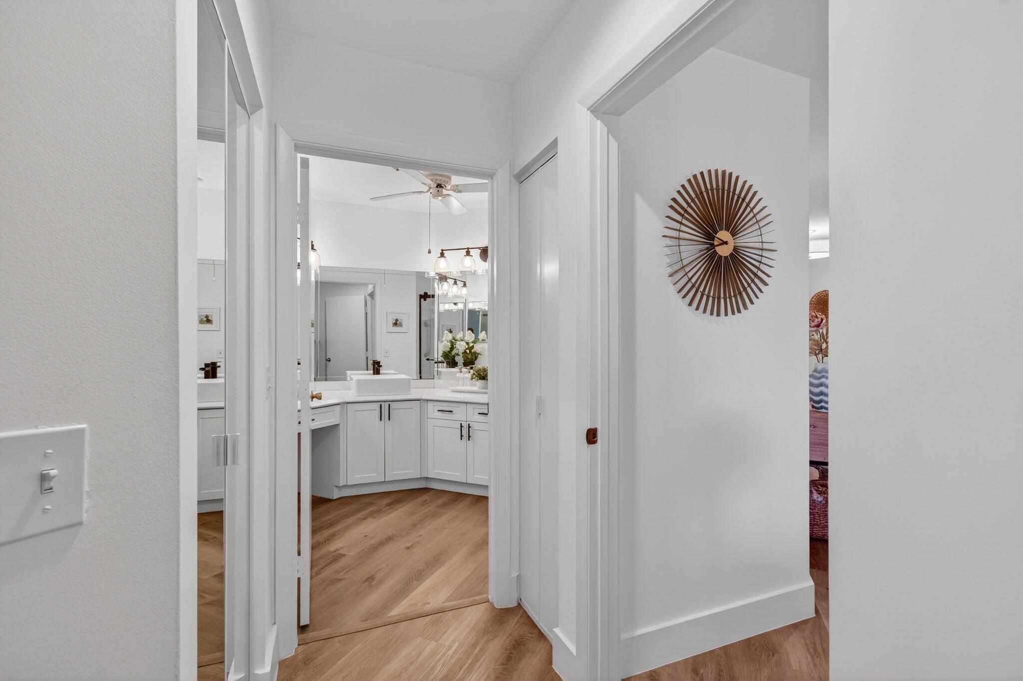 Exquisite three bedroom, two bath condo in Platina's Illustre Village offers a picturesque lake view from every window. This immaculate condo is is right out of an episode of HGTV! Beautifully decorated with extensive contemporary wood trim, high hat lighting and updated kitchen. The spacious master bedroom features a walk-in closet, plus updated master bathroom. The split floor plan provides privacy, while luxury vinyl flooring makes clean up a snap. Full-size washer and dryer (2023), a water heater (2022), and a recently updated air conditioning system (2024). The screen-enclosed balcony is ideal for enjoying morning coffee or relaxing while gazing at the serene lake. Perfect for all year or seasonal living.