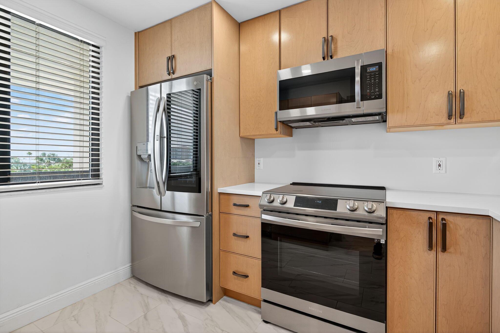 LIVE WHERE OTHERS VACATION! Fabulous Location with Amazing Direct Ocean Views!!! Beautifully and Luxuriously Renovated this top Floor Corner 2 bed 2 bath condo just steps to the beach and the turquoise waters of the Atlantic Ocean! Every detail has been thoughtfully curated & impeccably upgraded. The bright & open floor plan has floor to ceiling impact slider's in the Living areas which flood the space with natural light & provides unobstructed ocean views. The kitchen features custom wood cabinetry, quartz countertops, SS appliance package including a smart range (air fryer, convection oven), wine fridge, and modern sleek pantry & appliance cabinets. The primary suite features floor to ceiling slider's accessing a private balcony, remote custom blackout shades, a redesigned master bath