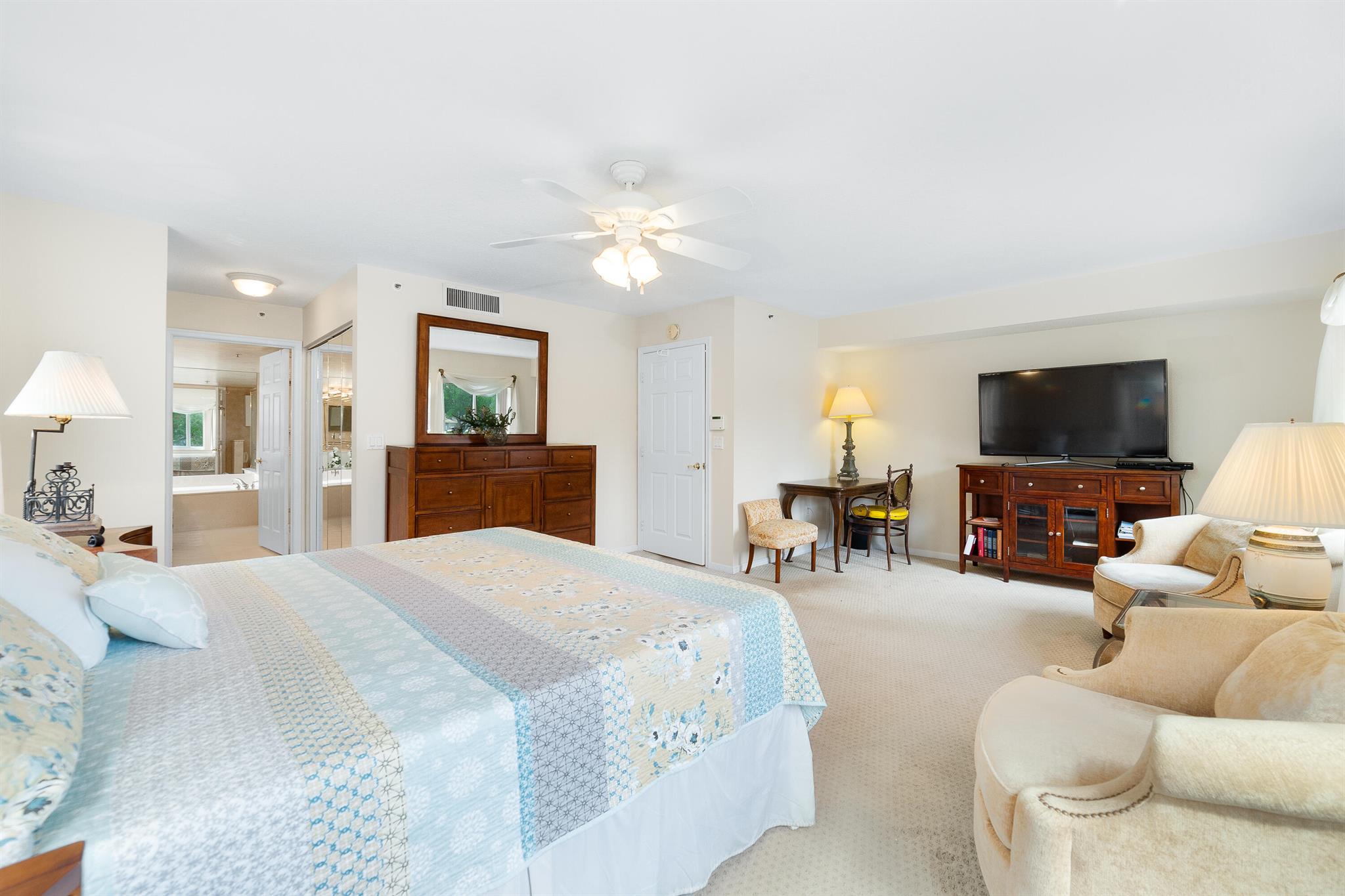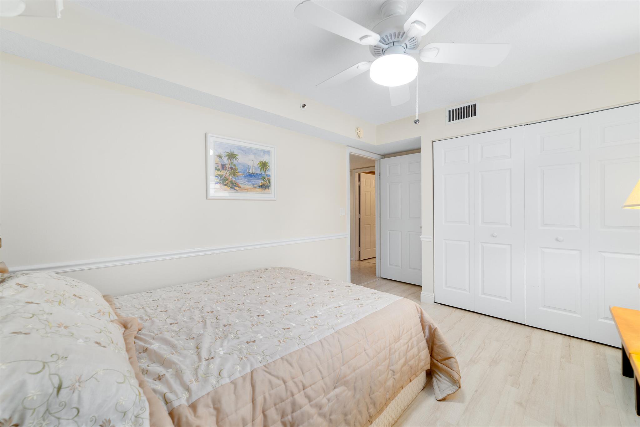 You'll love the gorgeous LAKE view from this bright and spacious, 2 bedroom PLUS separate DEN, 2 bathrooms, LAKEFRONT unit in a fantastic, active 55+ community that has so much to offer! The eat-in kitchen is equipped with stainless steel appliances, Corian countertops, pantry and breakfast area. There is ceramic tile in the living areas and den, laminate in the guest bedroom and luxury carpet in the primary bedroom. The primary bedroom faces the lake, and offers a generous walk-in and strip closets. The en-suite primary bathroom is finished with dual sinks, separate tub and shower. Other notable features include a laundry room with a sink, plenty of storage closets, plantation shutters, 2023 AC and 2021 water heater. The roof is expected to be replaced in 2025. This unit is located steps