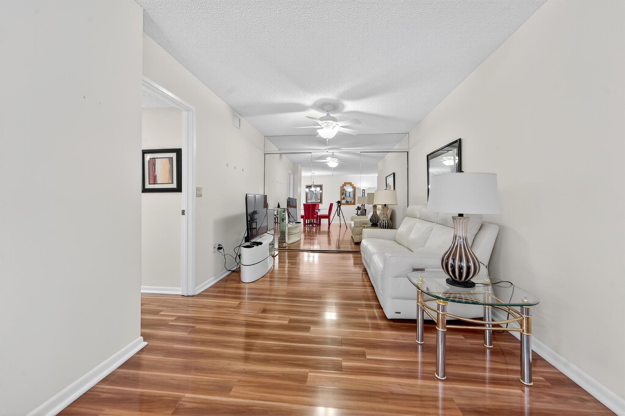 Immaculate, light, bright 2/2 penthouse condo with den and Florida room with panoramic lake view. Conveniently located right across the street from the re-designed clubhouse. Stunning, high-grade wood laminate floors cover all living areas except baths. Updated kitchen cabinets. Stainless steel appliances. A/C is 5 years old. Sold AS IS including elegant and expensive furniture on premises. This ready-to-go unit even has its own covered parking space. Perfect for snowbirds looking for a fast, effortless move-in and start to the season. Huntington Pointe is a an active adult community that features a 53,000 square foot clubhouse. The 600 seat theater offers live entertainment and movies year 'round. You also find a fitness center, card rooms, billiard room, aerobics room, bocce courts,