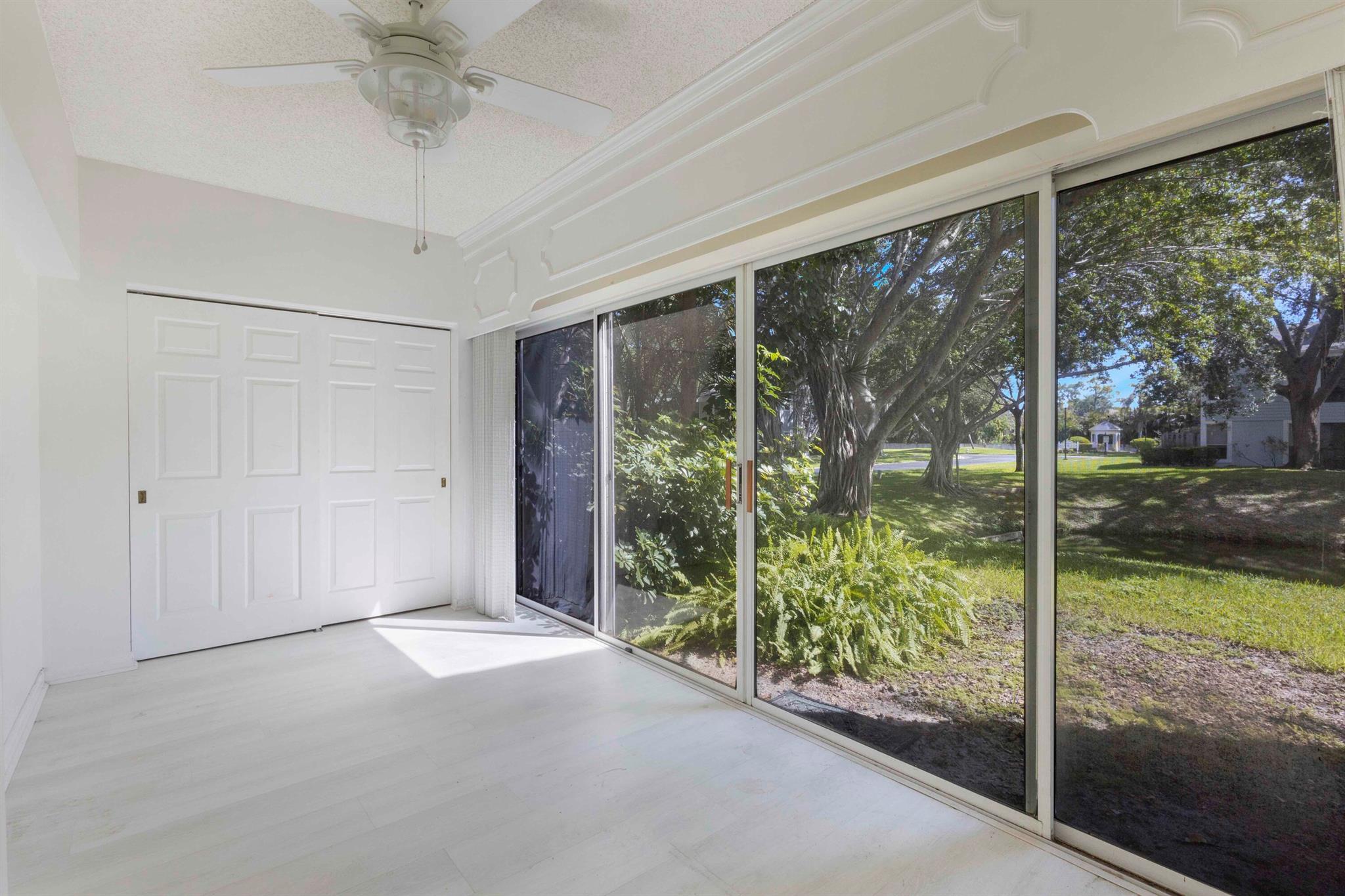 Investor alert - this spacious and light-filled 2-bedroom, 2-bathroom first-floor corner unit with a bonus room offers serene lake views and is ready for immediate annual rental--no waiting period! With 1,617 sq ft, this move-in-ready condo lives like a single-family home and features a renovated kitchen, full dining room, walk-in closets, full-size washer and dryer, abundant storage, ceiling fans, and uniform ceramic tile and neutral vinyl flooring--no carpet. Enjoy complete privacy with no neighbors beside you. One assigned, covered parking spot and guest parking are conveniently located nearby. Pet-friendly (one pet up to 25 lbs allowed). The community offers a beautiful lakeside pool, clubhouse, and tennis courts. Ideally located in West Boca Raton, you're minutes from I-95,