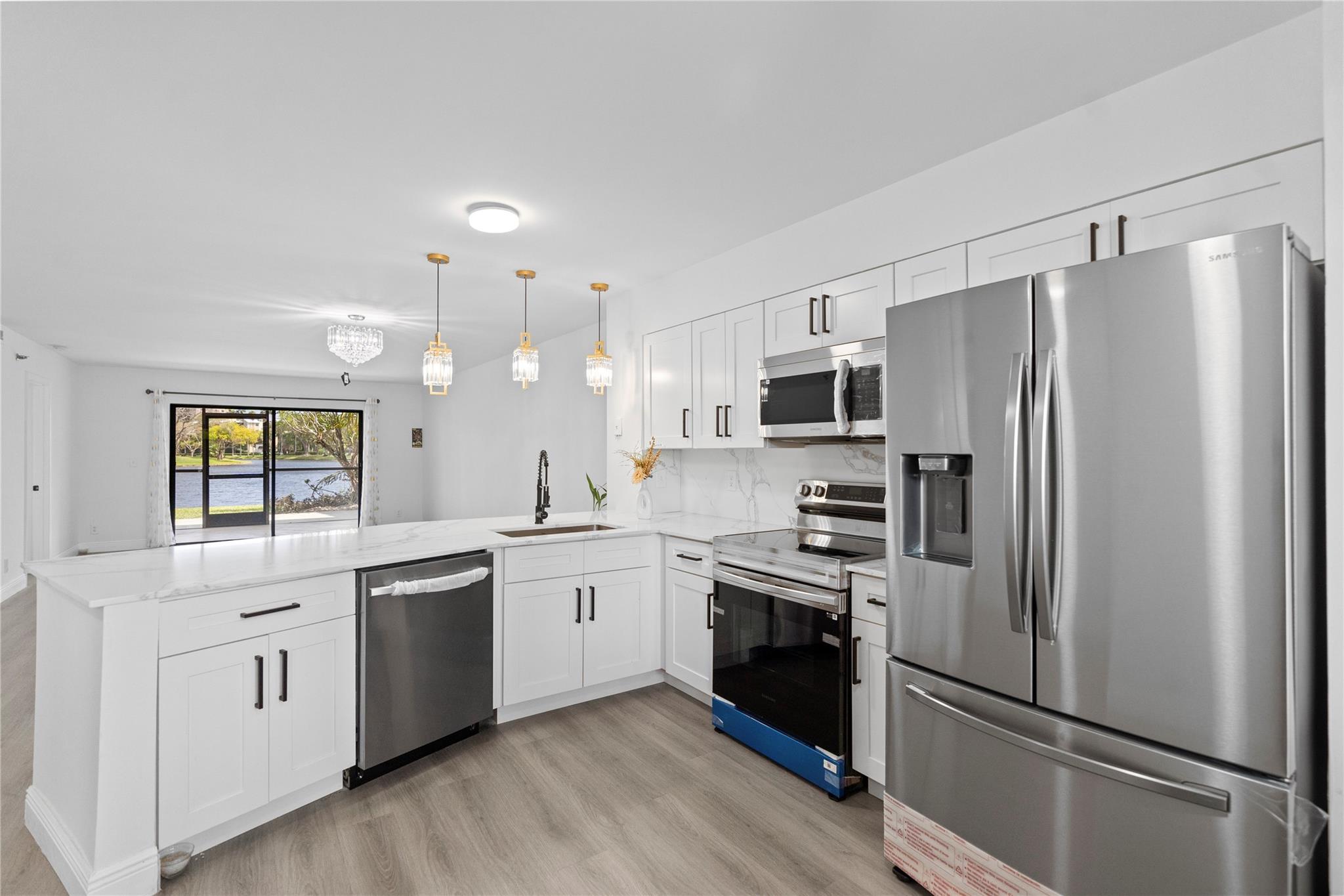 Welcome to this beautifully renovated 2/2 condo with model-style finishes throughout. Renovation was completed in 2024. Features include a 2020 AC, new water heater, quartz countertops, elegant wood cabinets with soft-close drawers, stainless steel appliances, and updated bathrooms. Brand new vinyl floors complete the stylish look. Enjoy stunning water views from this prime location. Seller pays assessment at closing, new roof 2024, Structural & milestone inspections completed, The community offers a large pool, clubhouse, fitness center, meeting/event room, and card room. Close to shopping, dining, entertainment, race tracks, and casinos. Parking is easy with a designated spot in front, plus additional storage inside the building. Move in ready! Don't miss out this incredible unit!