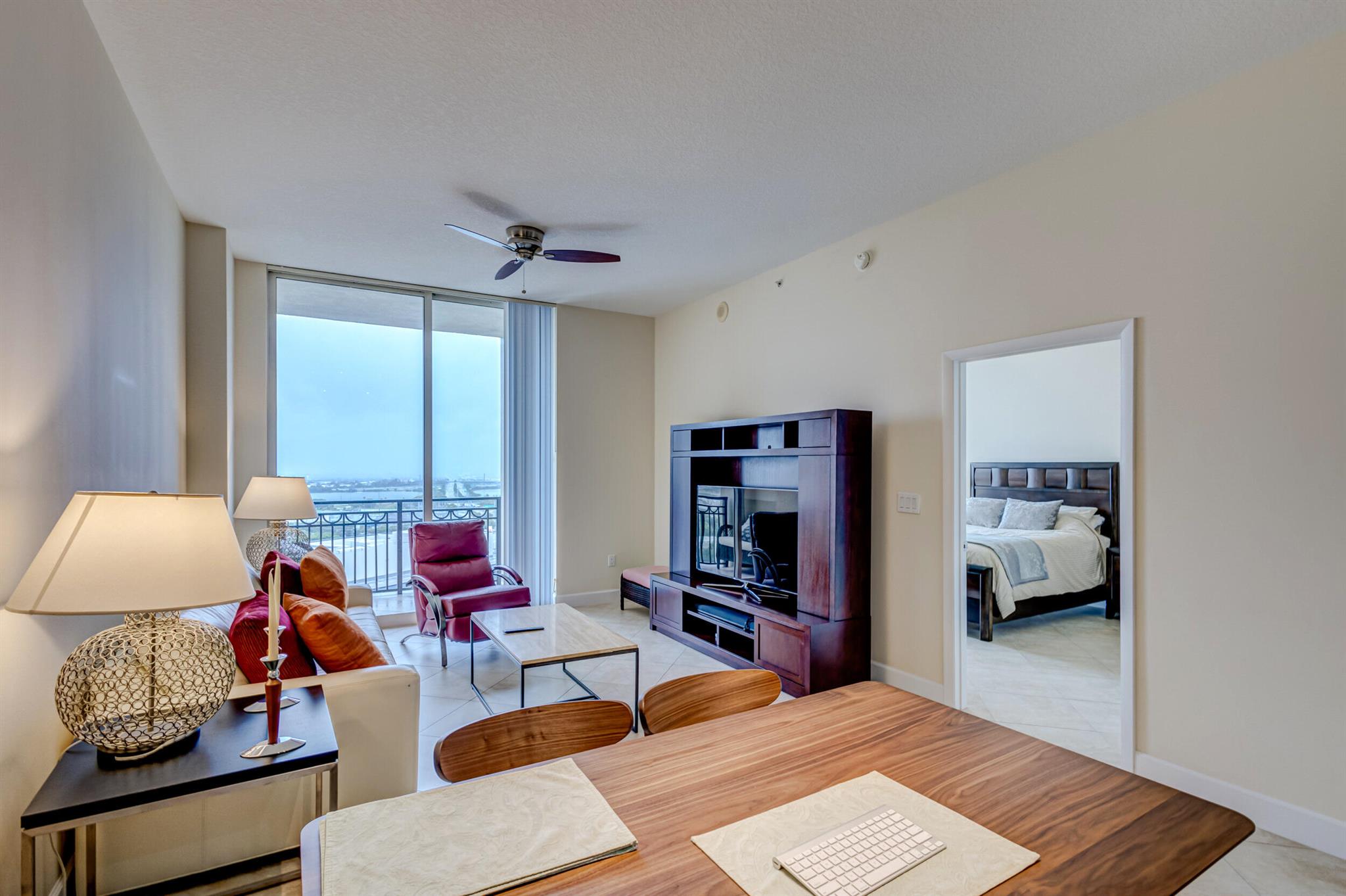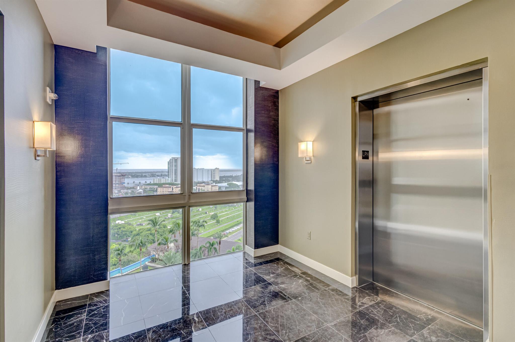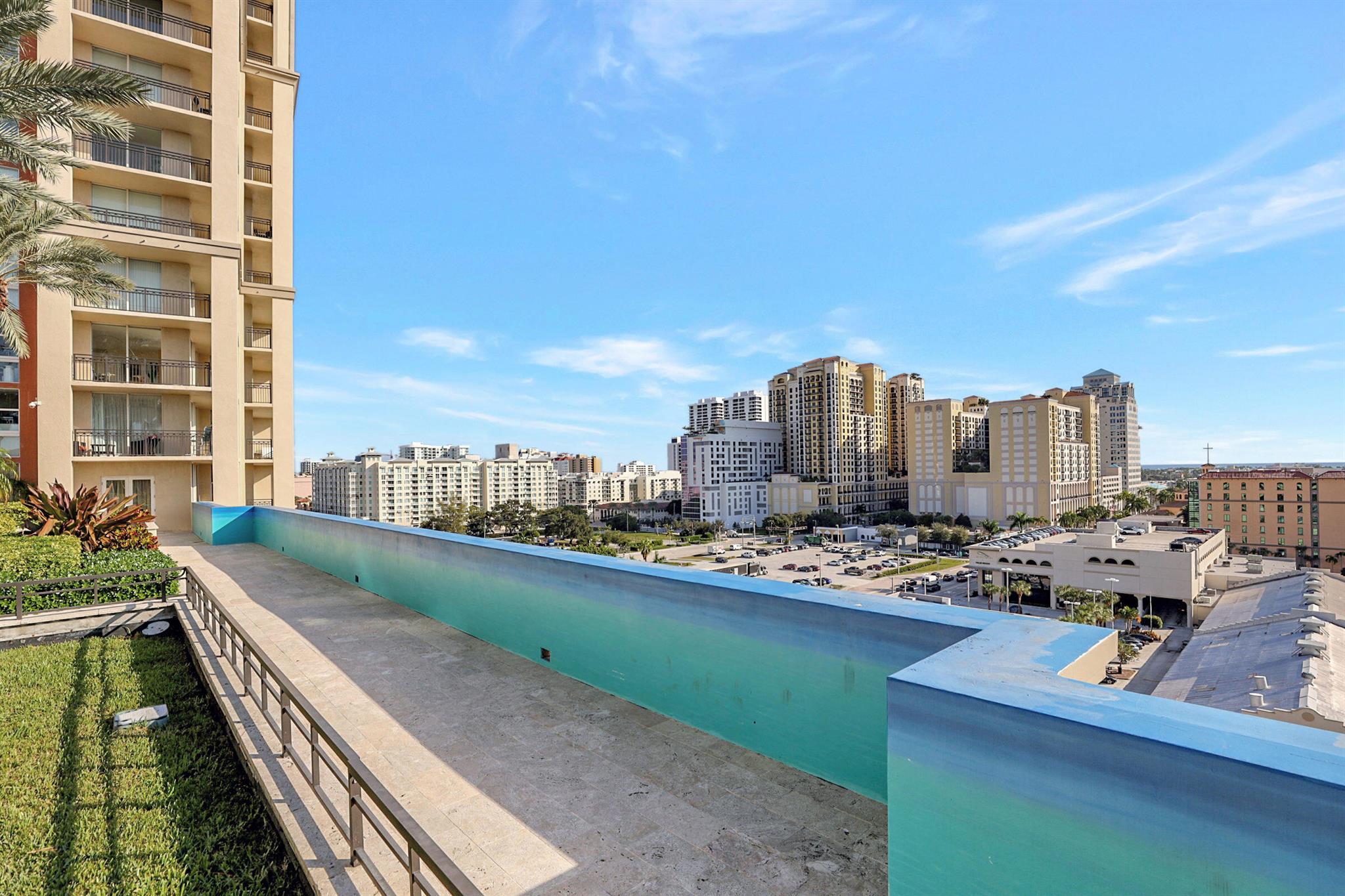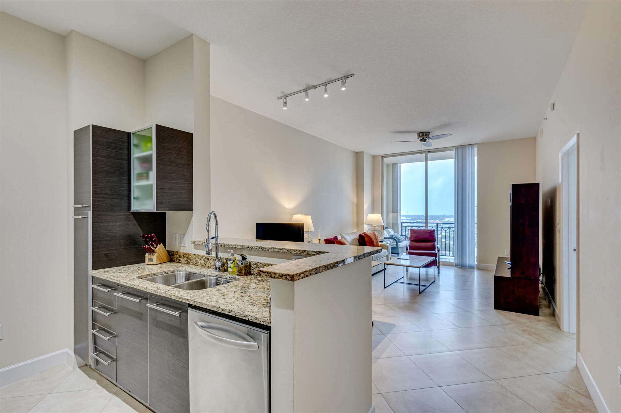 Beautiful LOWER PENTHOUSE residence features 1 bedroom, 1 bath, completely tiled with all impact windows throughout! This immaculate condo is equipped with modern kitchen cabinets, beautiful granite countertops, stainless steel Kitchen Aid appliances, Bosch air conditioner, and laundry closet with full size front load Samsung washer and dryer. Live in luxury as you enjoy your morning coffee or evening views of Downtown West Palm Beach from your covered and tiled balcony. Discover South Florida living in the prestigious Cityplace South Tower. This resort style building offers first class amenities including 24-hour front desk, valet parking, heated infinity pool and spa, state-of-the-art fitness center, lounge, summer kitchen and more!